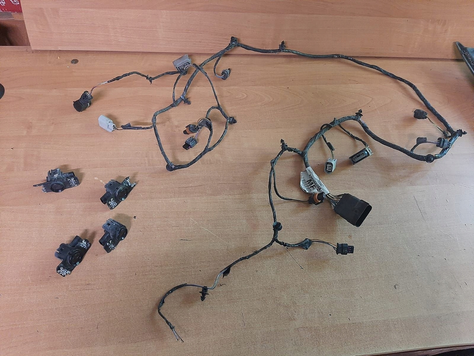 PDC джгут CV6T15K867 MFCFORD KUGA II 2ті з фотографій - як на фотографіях - Європа - PDC джгут + 4 шт датчиків для переднього бампера рік 2013 ( Примітка 1 Кінцевий кабель відрізаний-як на фотографіях + 4 датчика)- код забарвлення Panther Black -FD