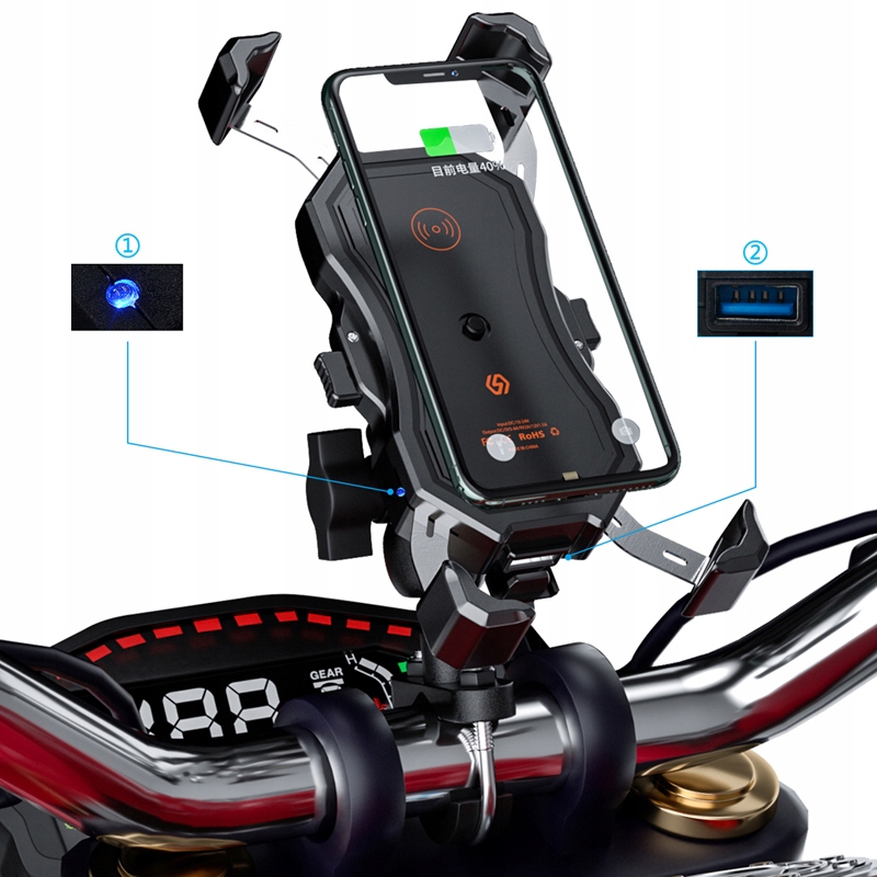 МОТОЦИКЛЕТНИЙ ТРИМАЧ ДЛЯ ІНДУКТИВНОГО ТЕЛЕФОНУ З ЗАРЯДНИМ ПРИСТРОЄМ ☆ Тримач телефону для міцного та електричного утримання вашого телефону або навігації. Завдяки чудовій якості та дизайну ручка виглядає дуже красиво та забезпечує безпеку. ☆ Тримач являє собою USB-роз’єм, призначений для заряджання «QC 3.0», тому вам не доведеться турбуватися про свій телефон. Тримач має можливість заряджати «Inductive QI», всі пристрої оснащені бездротовим модулем живлення. Цей пристрій оснащено перемикачем увімкнення/вимкнення, який надається через допоміжний роз’єм для додаткового USB та джерела живлення. ☆ Підходить для будь-якого кабелю шириною від 5,6 до 9,6 см, висотою від 13,8 см до 18 см. ☆ Зберігається на дошці діаметром від 12 до 32 мм, на дзеркалі ємністю 10 мм. ☆ Два кульових шарніра забезпечують великий комфорт при встановленні оптимальних положень, а також безпеку під час дуже агресивної їзди. ☆ Тримач для телефону ідеально підходить для велосипеда, квадроцикла, мотоцикла, скейтборду. Рама з нержавіючої сталі, редуктор із чистої міді. Оновлена підставка з нержавіючої сталі, міцний, високоякісний видимий матеріал. Оновіть вбудовану велику котушку. Вбудована стандартна бездротова зарядна котушка QI в поєднанні з дизайном пристрою, покращеною електрикою, різною відстанню та всенаправленим розпізнаванням. 8 мм, швидка зарядка. Довжина кабелю 8 мм, швидка швидкість бездротового заряджання, інтегрована інтелектуальна велика котушка, велика довжина заряджання, також можна нормально використовувати в захисному футлярі. Бездротове заряджання Qi QC через USB ①Індикатор USB ②З’єднання для заряджання USB Оновлення бездротової зарядки, покращена основна відстань, швидша швидкість заряджання. Котушка перемикача незалежної зарядки через USB: увімкніть зарядку через вихід USB, синій індикатор завжди горить. ВИМК.: вимкнено у вимкненому режимі. Qi wirelessgo: коли пристрій від’єднано, мобільний телефон заряджається бездротовим способом. Червоне світло горить, щоб вимкнути зарядку на пристрої, а синє світло горить на пристрої керування бездротовою зарядкою. Два способи встановлення ① Кріплення на комп’ютері за допомогою адаптера від 12 до 32 мм ② Кріплення на дзеркалі за допомогою адаптера від 10 мм Характеристики продукту ① Тримач для телефону з підтримкою бездротової зарядки 10 Вт, заряджання через USB-порт «Quick Charge» (QC3.0), підтримка дротової та бездротової зарядки для задоволення потреб клієнтів. ② Висувний тримач для мобільного телефону з однією кнопкою, який легко прибрати та розмістити, а керувати ним легко та швидко, дозволяючи легко зберігати музику, навігацію та шляховий лист, довільне заряджання та інші функції під час водіння. ③ Виріб має два способи: кермо та дзеркало заднього виду, і встановлення є різноманітним, щоб використовувати більше моделей. Монтажні аксесуари виготовлені з алюмінієвого сплаву, який є більш міцним і красивим. ④ Незалежний від джерела кронштейн, який може незалежно контролювати дротове та бездротове заряджання, вільно перемикати режим заряджання, а робота є залежною та швидкою. ⑤ ⑤ Джерело живлення знаходиться в блоку живлення довжиною 135 см, який можна підключити до зовнішнього джерела живлення автомобіля, що відповідає будь-яким вимогам до встановлення. Характеристики напруги живлення: 12-24 В Вихідна потужність: бездротов