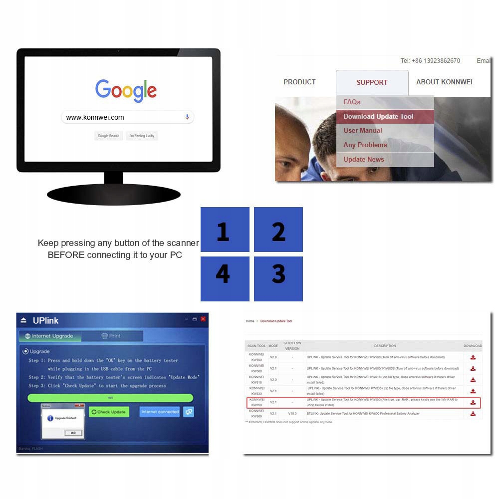 Діагностичний вимірювач, OBD2 сканер Konnwei KW850