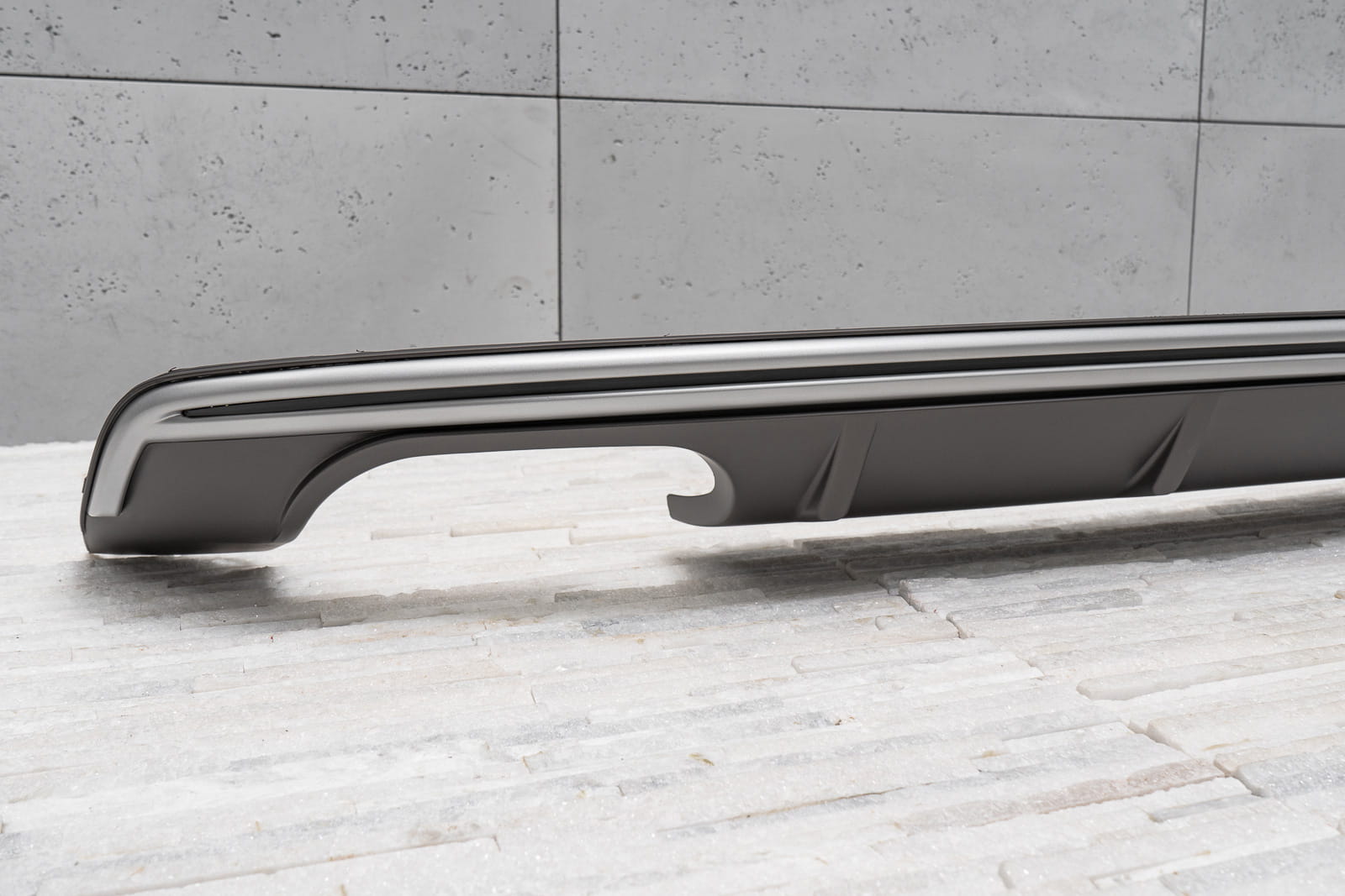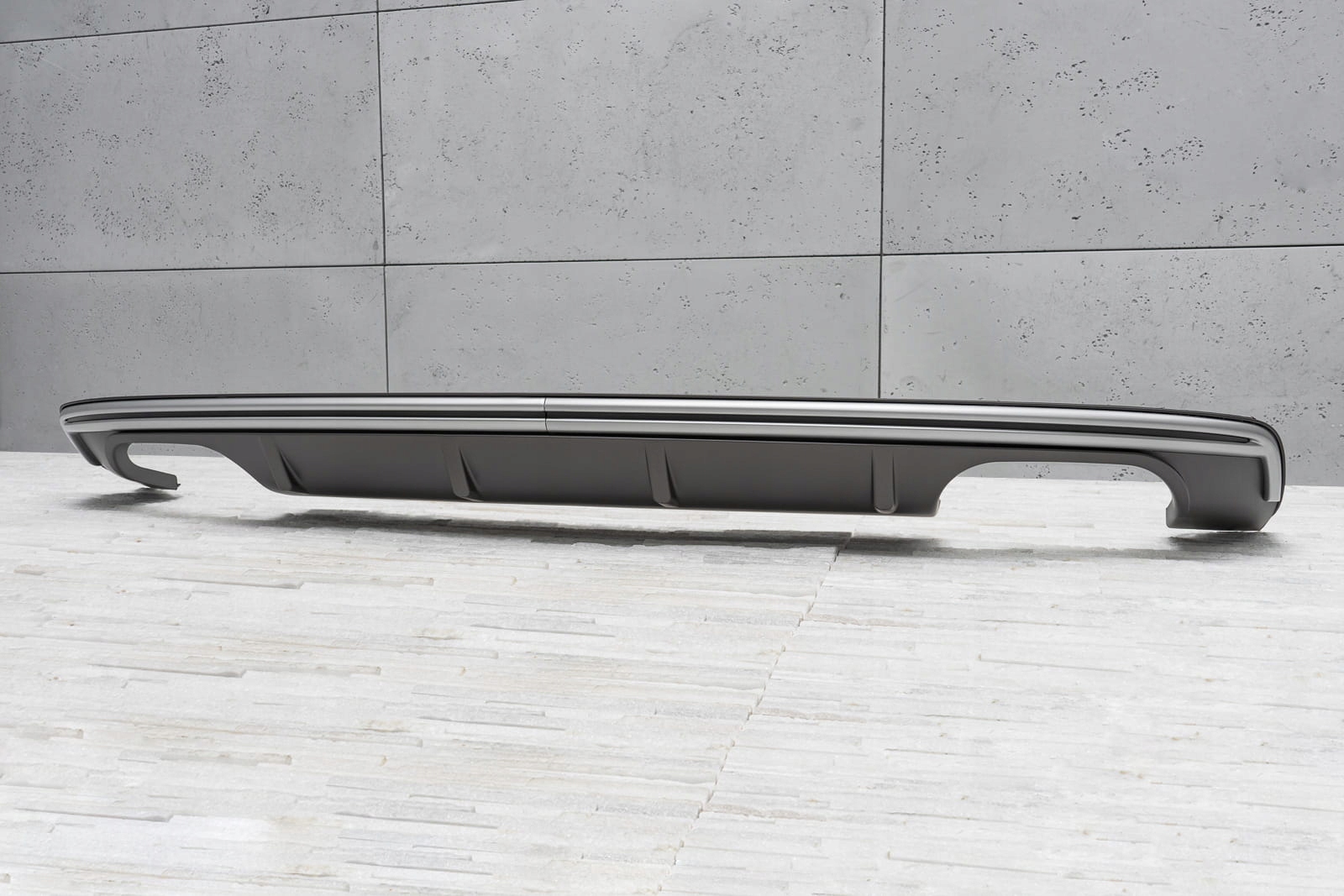 характерний подвійний вихлоп дозволяє домогтися ефекту укладання Audi A3 на версії s3.    Дифузор розроблений так, щоб ідеально поєднуватися з іншими елементами оздоблення, доповнюючи динамічний і спортивний характер вашого автомобіля. Крім візуальних якостей, дифузор покращує аеродинаміку автомобіля, а також зменшує шум повітря, який проходить під автомобілем.   Виріб виготовлено з високоякісного автомобільного АБС-пластику антрацитового кольору. Справжньою окрасою дифузора є срібляста планка, яка привертає увагу і підкреслює вихлоп нашого автомобіля.    У комплект поставки входить монтажне обладнання.   дифузор-це запасна частина, сумісна з місцем установки в задньому бампері автомобіля. Для установки елемента. необхідно розібрати спідницю бампера, потім замінити її стилізованим дифузором.