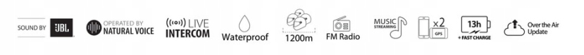 випробуйте виняткову якість звуку через домофон Bluetooth з автоматичним підключенням. Завдяки системі можна підключити до 4 мотоциклістів з діапазоном до 1200 м.