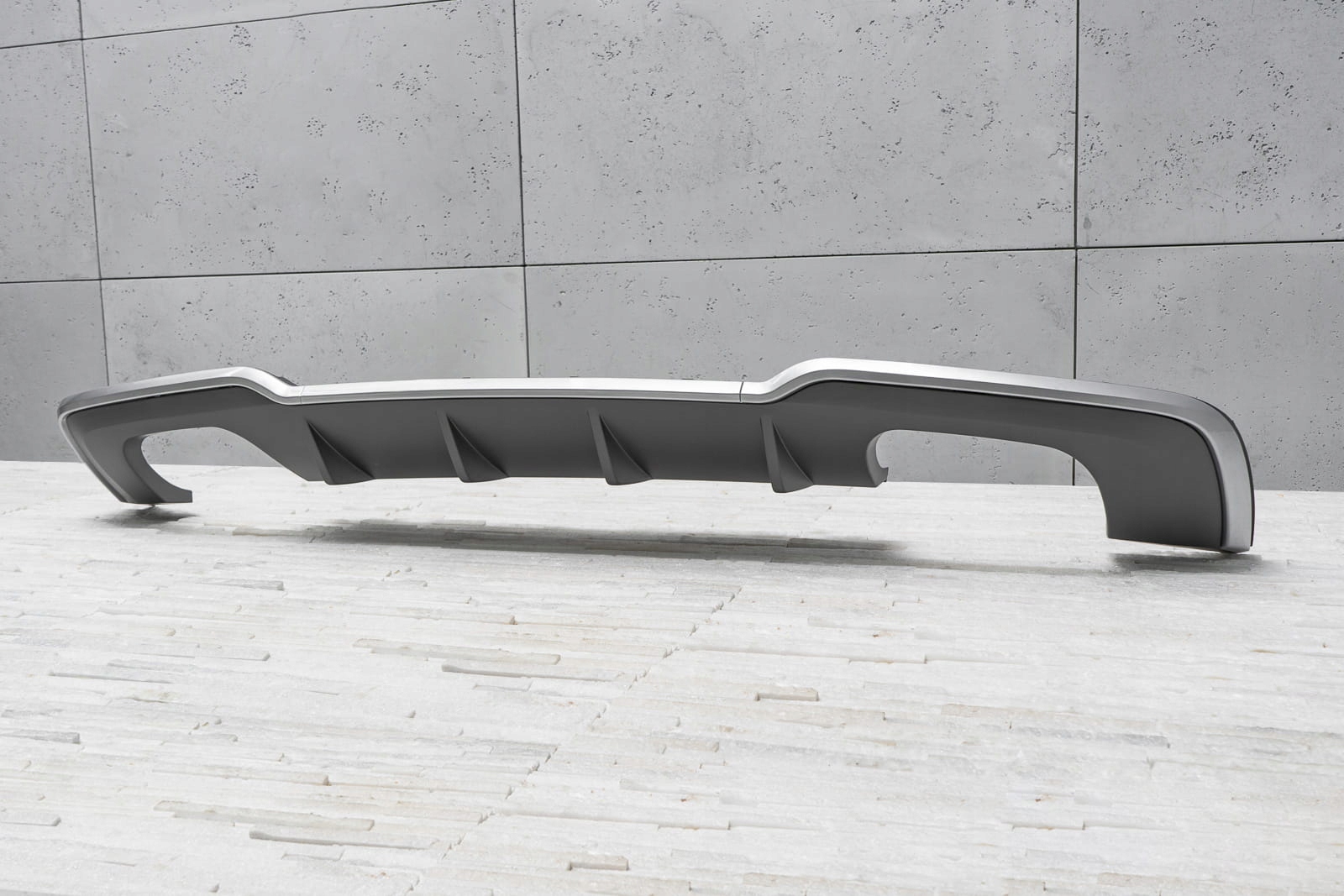 характерний подвійний вихлоп дозволяє домогтися ефекту укладання Audi A3 на версії s3. Дифузор розроблений так, щоб ідеально поєднуватися з іншими елементами оздоблення, доповнюючи динамічний і спортивний характер вашого автомобіля. Крім візуальних якостей, дифузор покращує аеродинаміку автомобіля, а також зменшує шум повітря, який проходить під автомобілем. Виріб виготовлено з високоякісного автомобільного АБС-пластику антрацитового кольору. Справжньою окрасою дифузора є його футуристична форма, яка викликає асоціації з автомобілями, використовуваними на сучасних гоночних трасах. У комплект поставки входить монтажне обладнання. дифузор-це запасна частина, сумісна з місцем установки в задньому бампері автомобіля. Для установки елемента. необхідно розібрати спідницю бампера, потім замінити її стилізованим дифузором.