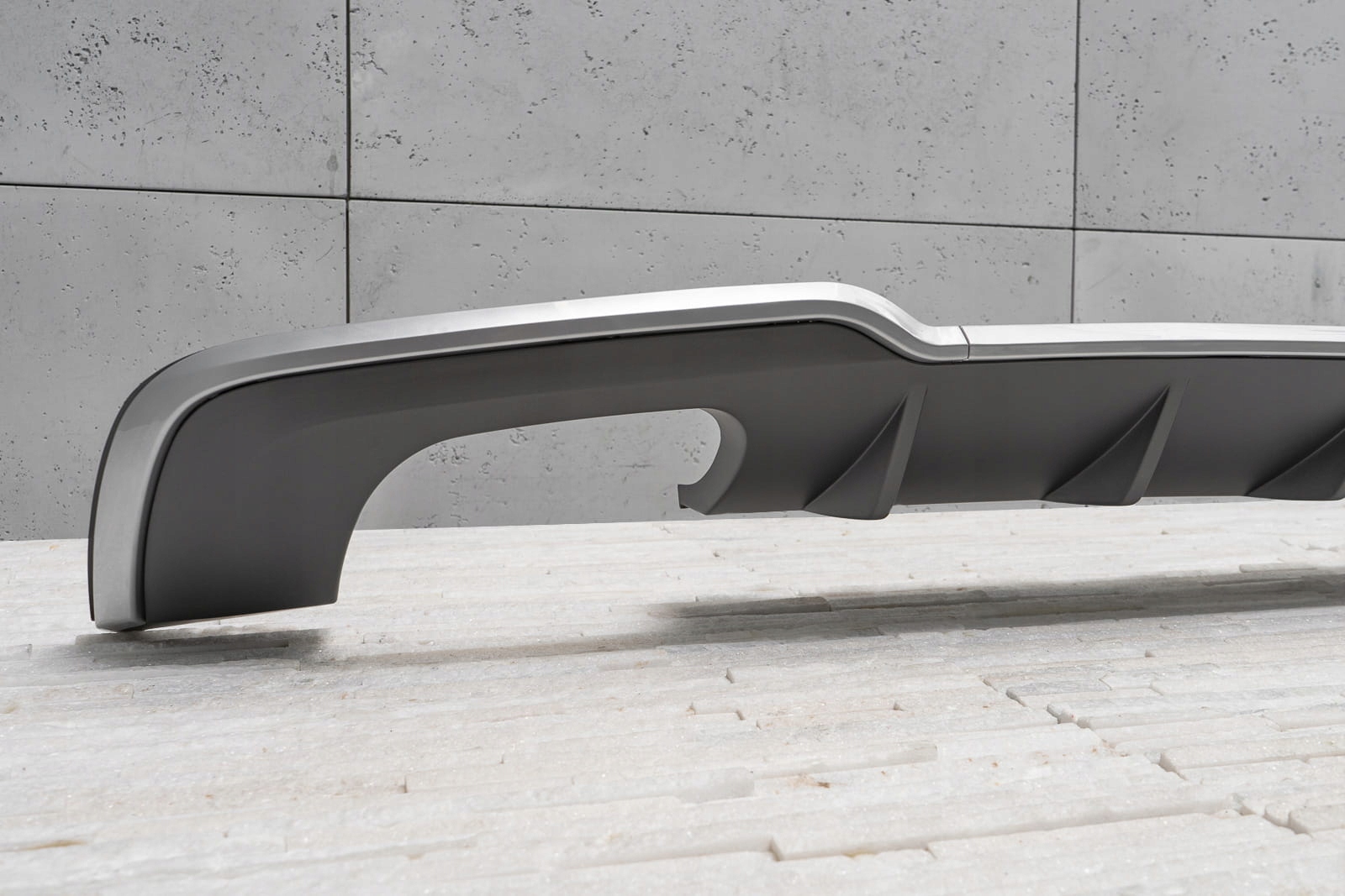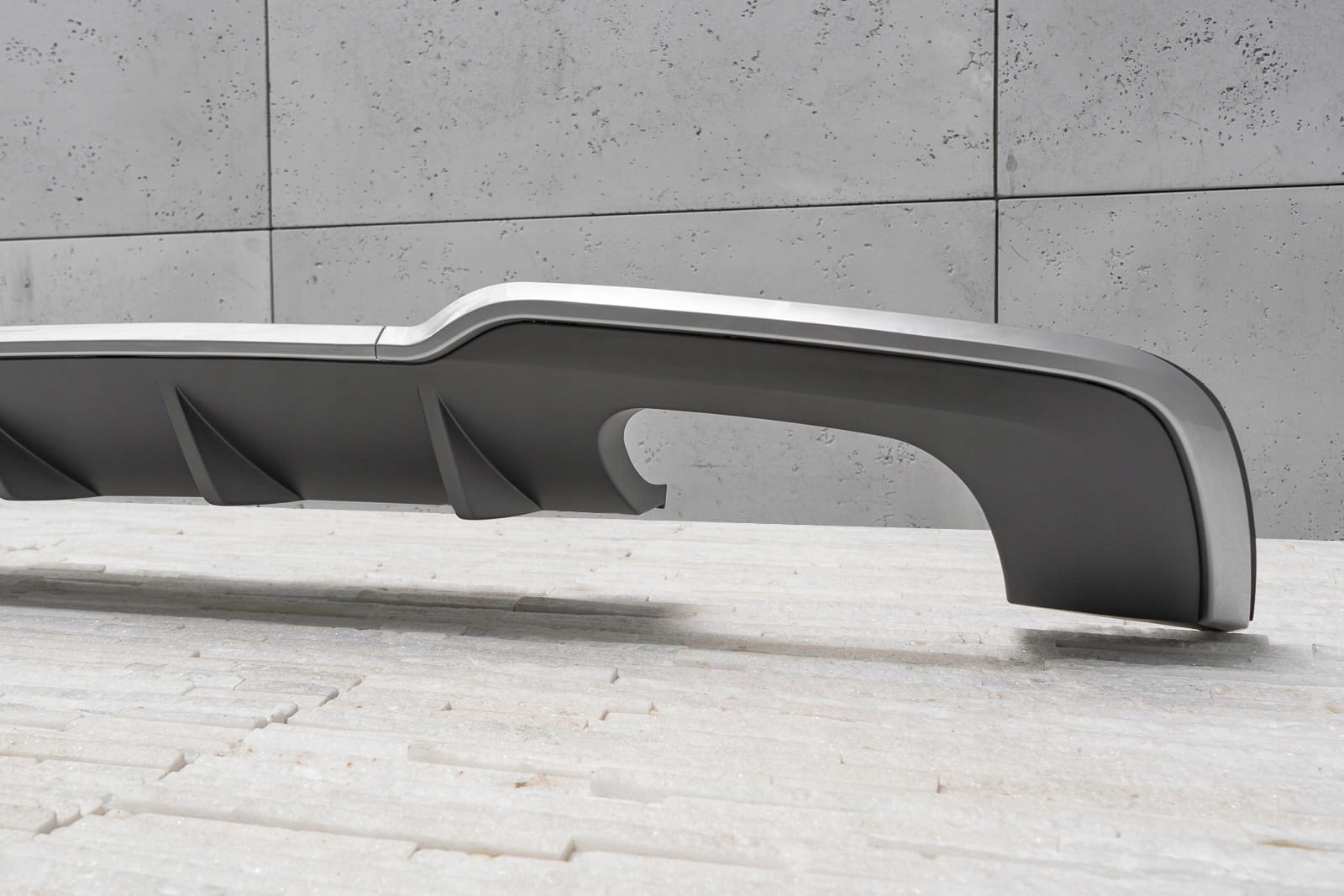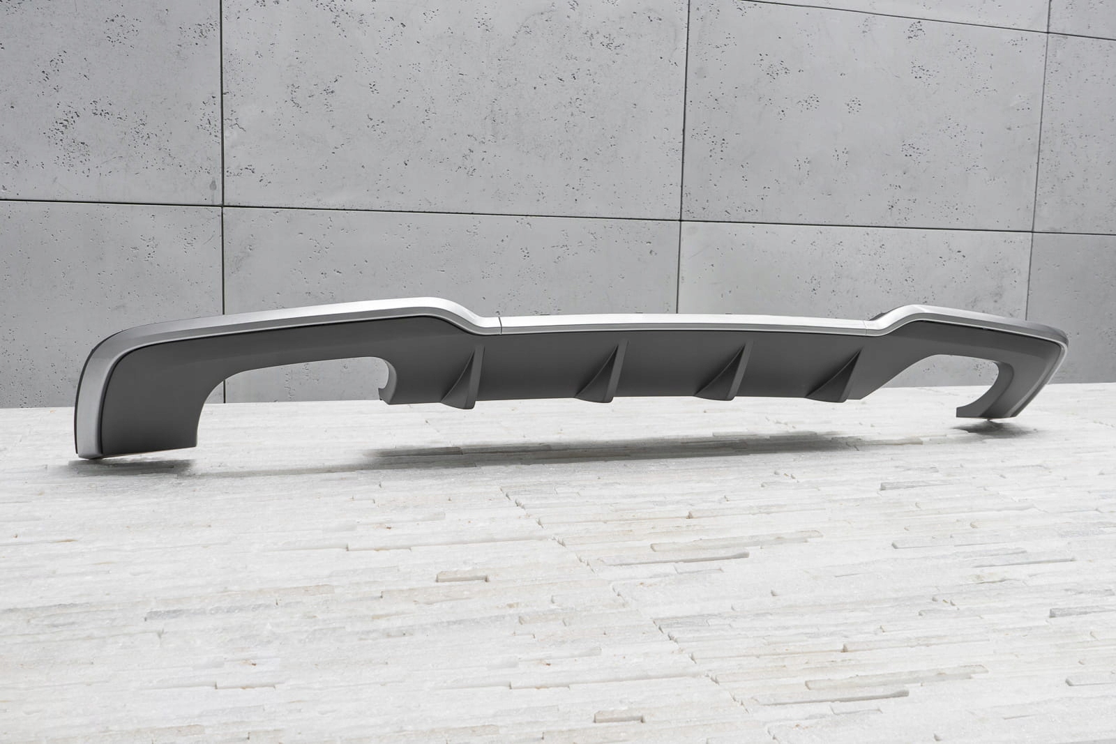 характерний подвійний вихлоп дозволяє домогтися ефекту укладання Audi A3 на версії s3.    Дифузор розроблений так, щоб ідеально поєднуватися з іншими елементами оздоблення, доповнюючи динамічний і спортивний характер вашого автомобіля. Крім візуальних якостей, дифузор покращує аеродинаміку автомобіля, а також зменшує шум повітря, який проходить під автомобілем.   Виріб виготовлено з високоякісного автомобільного АБС-пластику антрацитового кольору. Справжньою окрасою дифузора є його футуристична форма, яка викликає асоціації з автомобілями, використовуваними на сучасних гоночних трасах.   У комплект поставки входить монтажне обладнання.   дифузор-це запасна частина, сумісна з місцем установки в задньому бампері автомобіля. Для установки елемента. необхідно розібрати спідницю бампера, потім замінити її стилізованим дифузором.