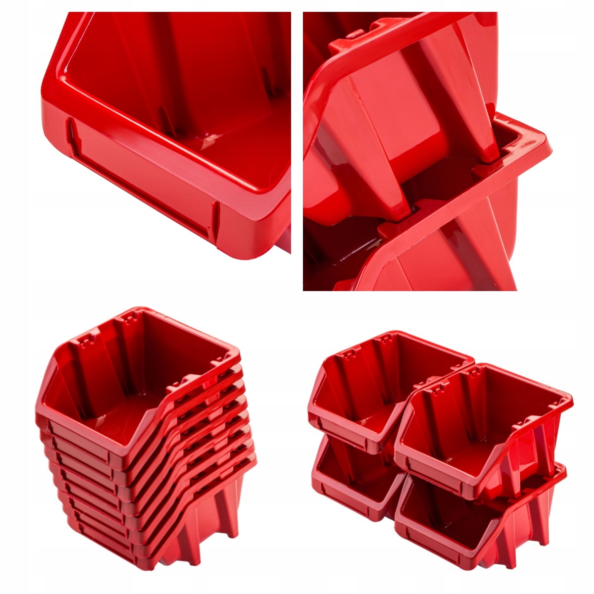 стіна оснащена високоякісними контейнерами для зберігання, виготовленими з увага до деталей. Створений для зберігання великої кількості різних елементів обладнання майстерні і інші дрібниці, наприклад, цвяхи або шурупи. Конструкція стійка до хіміїі атмосферних впливів . Ергономічний дизайн контейнерів дозволяє їх нагромадження. Відкритий фронт забезпечує легкий доступ до контенту контейнер.е>