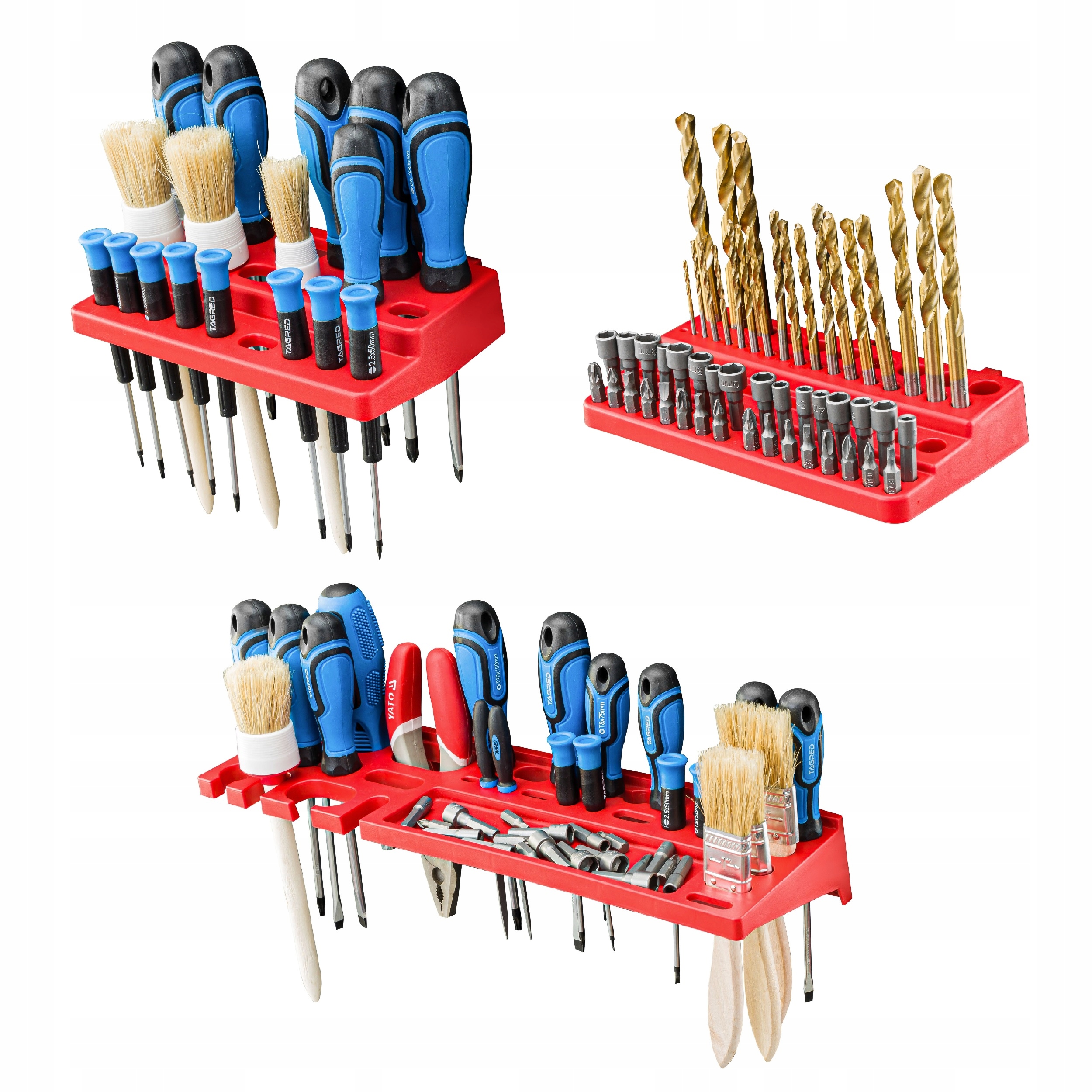 одним з найбільш важливих елементів набору є власники і полиці інструментів , прикріплені до дошки горизонтально, дозволяють чітко розташувати всі необхідні інструменти. Невикористаний простір над робочою стільницею-ідеальне місце для інструментальної дошки, що забезпечує доступ до вашого порогу. Представлений набір включає в себе тримачі і полиці для інструментів у відповідності зі специфікаціями:
