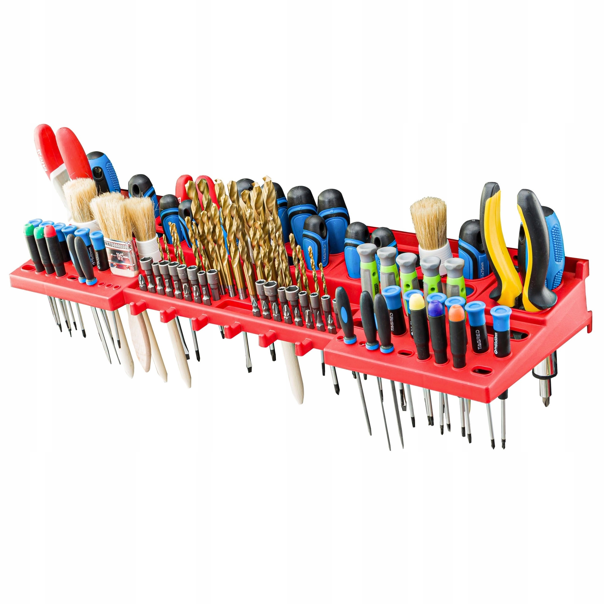 відмінним доповненням є міцні тримачі і полиці для інструментів , що допомагають зберігати довші інструменти, тобто молоток, Свердла, гайкові ключі, викрутка або Комбіновані плоскогубці. Дякувати для ручок найважливіші інструменти завжди будуть під рукою і займуть набагато менше місця в майстерні. практична і чудове рішення.е>