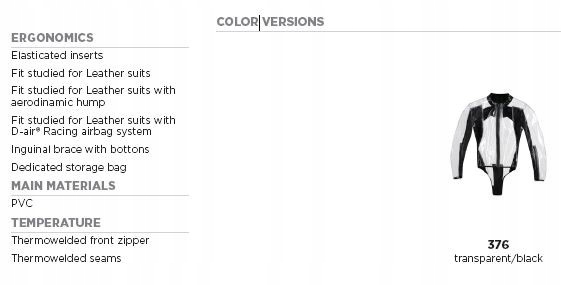 підходить для шкіряних комбінезонів, гідрокостюмів з аеродинамічним горбом, гідрокостюмів з системою подушок безпеки d-air® Racing