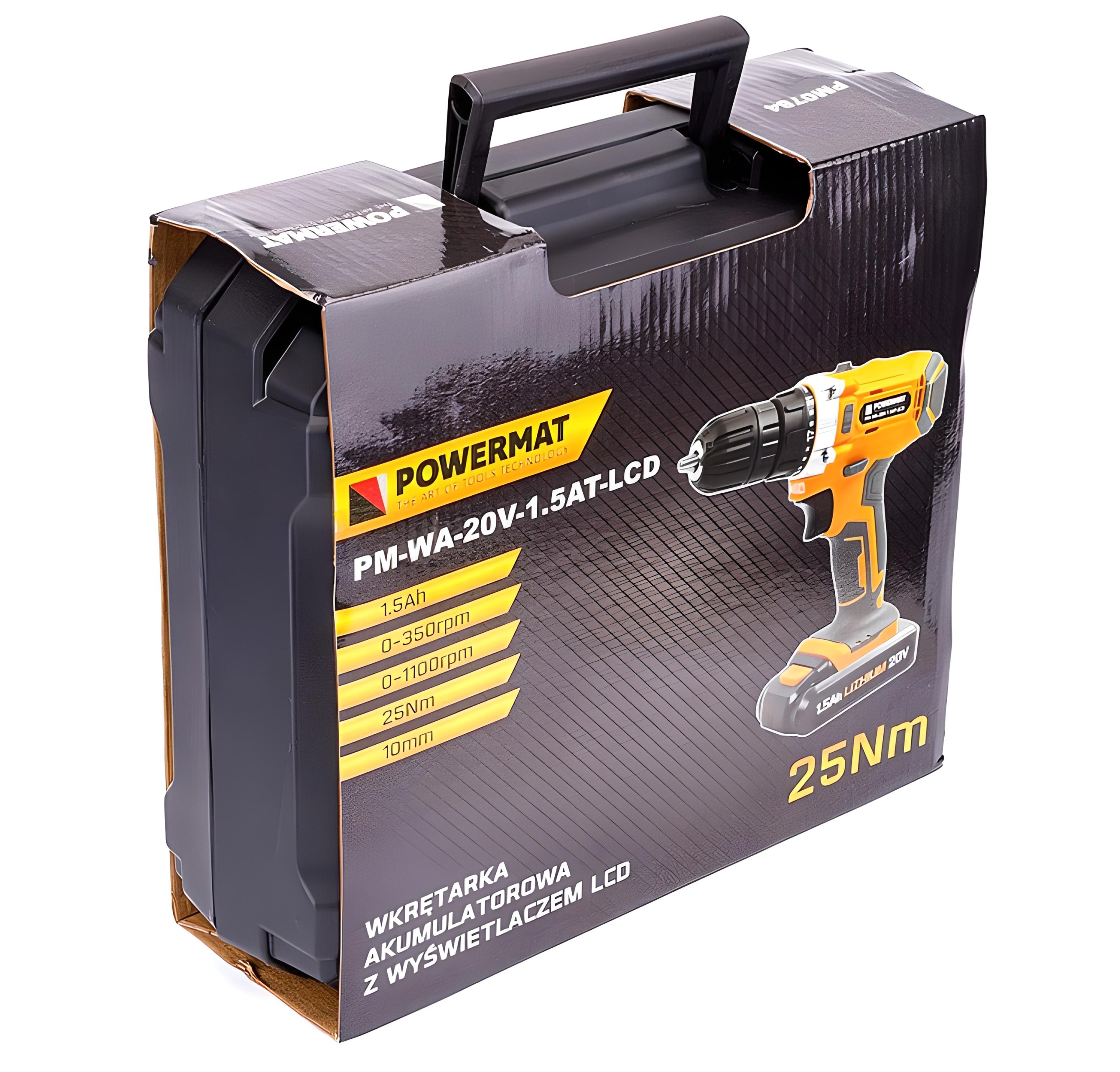 польської польської марки POWERMAT Poland Brand PM-WA-20V-1.5 AT-LCD + Свердла MAKITA Краща комплексна дриль за додатковою ціною-шуруповерт POWERMAT перевірена польська марка вбудований, із зазначенням робочих параметрів дрилі, РК-дисплей