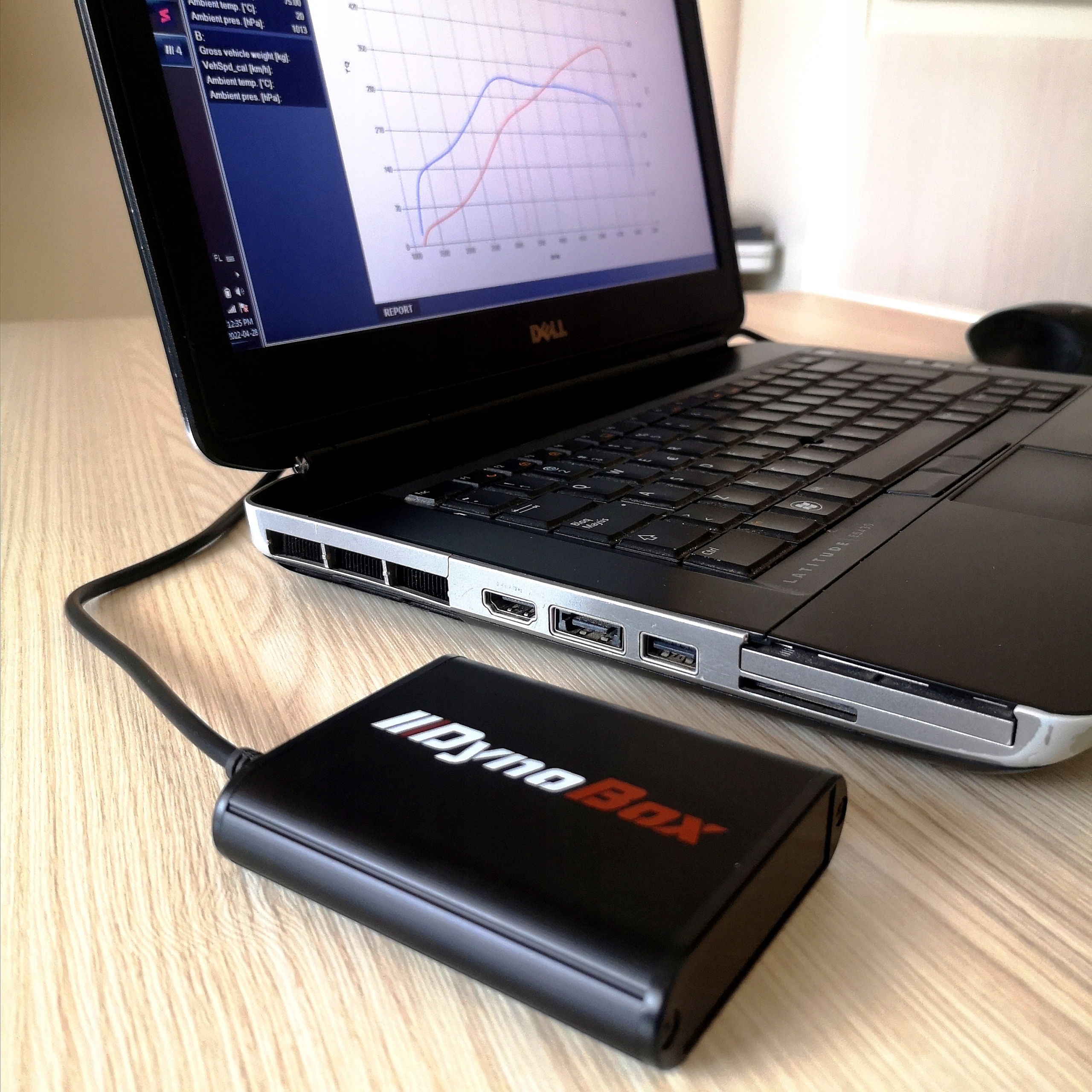 DynoBox – це портативний динамометр, який дозволяє визначати потужність і крутний момент транспортних засобів у повному діапазоні обертів двигуна. Пристрій базується на модулі GPS від Ublox , призначеному для автомобільних застосувань, який у поєднанні з активною антеною дає дуже точні та повторювані дані результати.