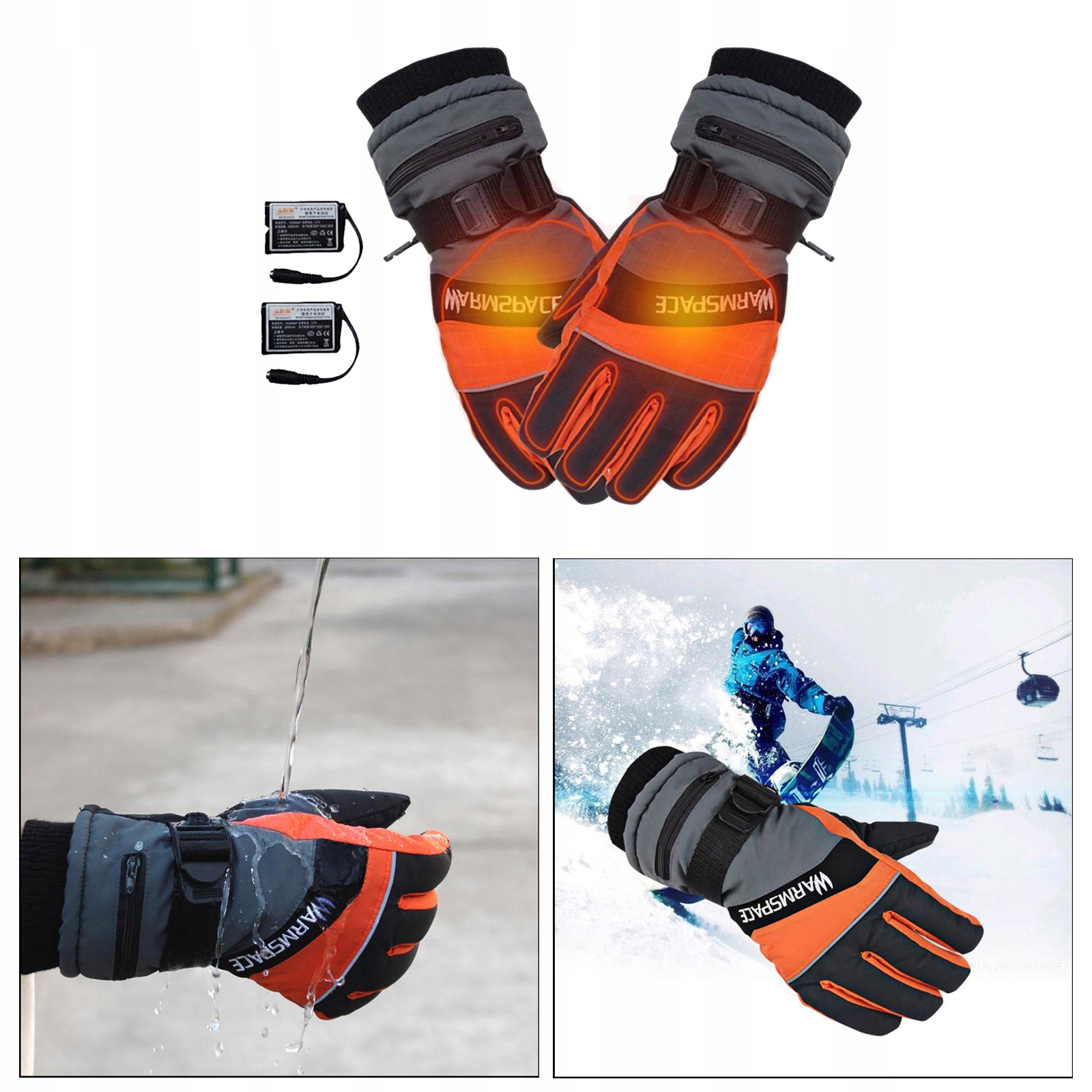 водонепроникні рукавички з електричним підігрівом на батарейках теплі рукавички помаранчеві рукавички