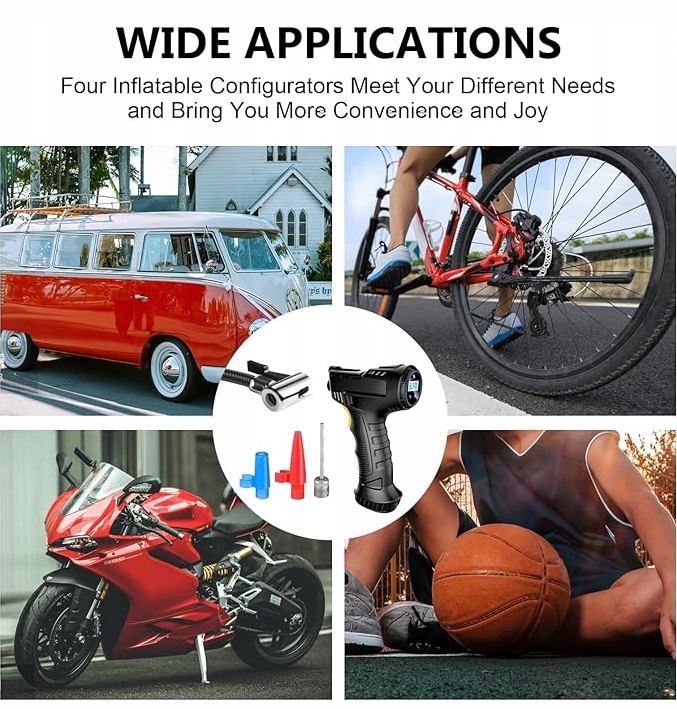 ✅ Точне накачування: Бездротовий компресорний насос забезпечує точне накачування велосипедних і автомобільних шин. Ви можете вибрати правильний тиск для своїх шин, щоб забезпечити оптимальну продуктивність і безпеку водіння. Функція автоматичної зупинки при досягненні встановленого тиску допоможе вам уникнути надмірного накачування шин.
