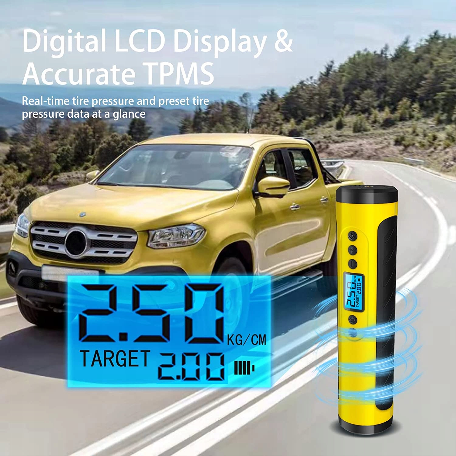 【цифровий РК-дисплей і 4 одиниці тиску】 цей електричний повітряний насос з точним цифровим РК-манометром дозволяє швидко і чітко перевіряти тиск в шинах.просто підключіть надувну трубку до клапана шини, тоді ви побачите тиск в шинах в режимі реального часу.існує 4 одиниці тиску: PSI, kPa, BAR і KG/CM2, що підтримують один ключовий перемикач.