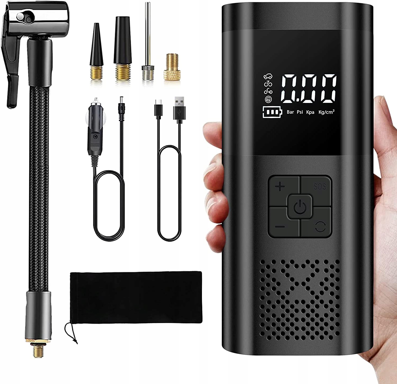 у разі надзвичайної ситуації, коли повітряний насос на батарейках не має струму, ми також пропонуємо автомобільний адаптер 12 В постійного струму (3 м), який можна підключити до роз'єму автомобільного прикурювача в якості повітряного насоса для накачування автомобільних шин.е>
