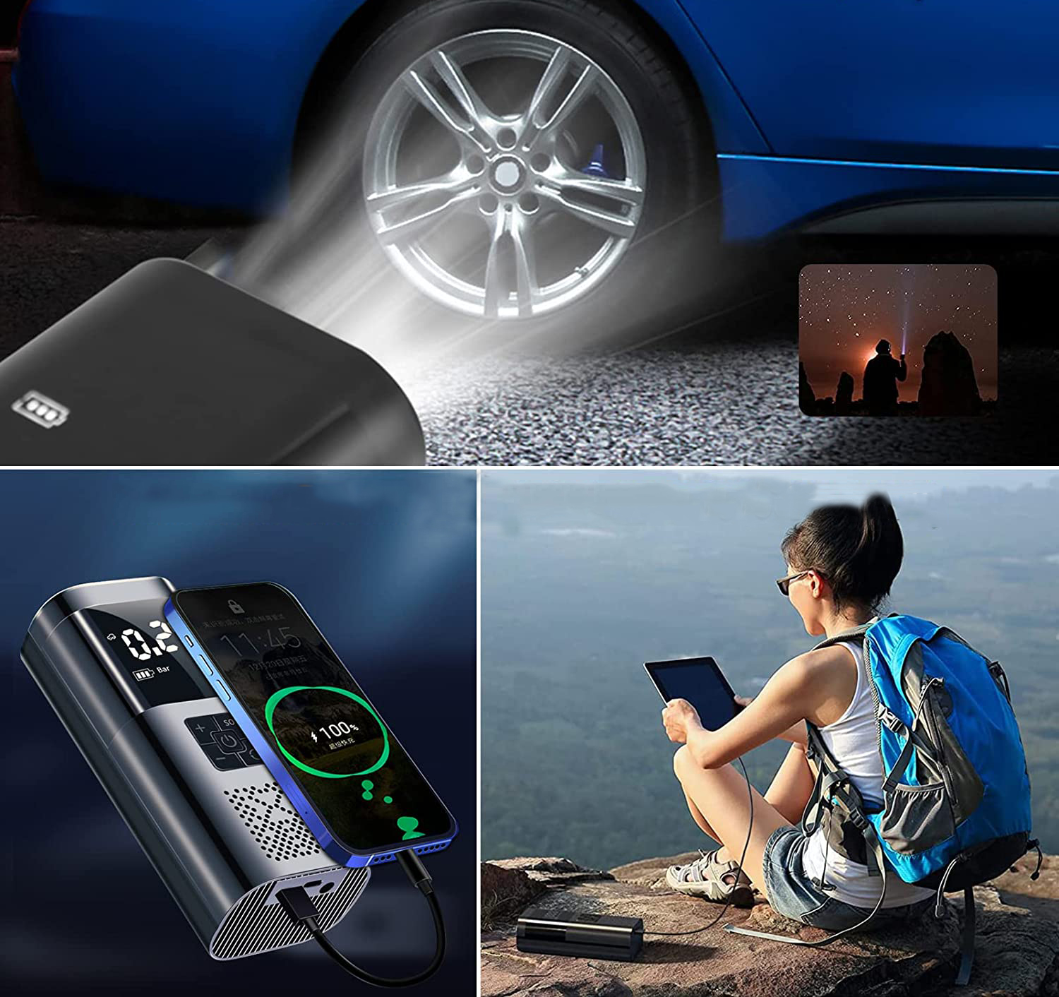 особливості: портативна газова насадка/подвійний дисплей/Світлодіодний світильник/зарядка і зупинка одним ключем/сильна потужність/тривалий термін служби батареї/Підтримка зарядки мобільного телефону
