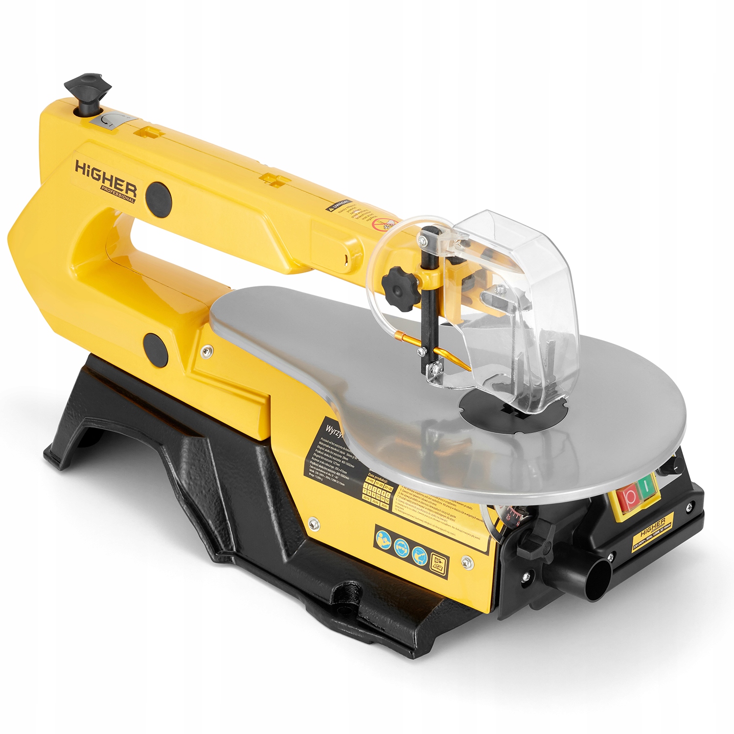 безпека при використанні наших продуктів-це важливе питання, яке ми вирішуємо при проектуванні і виробництві всіх видів обладнання. Міцна основа з отворами, що дозволяють прикрутити лобзик до твердої основи, міцна сталева конструкція з порошковим покриттям жовтого кольору і прозора кришка пильного полотна є найбільш важливими конструктивними елементами, які роблять лобзик для волосся HIGHER максимально безпечним пристроєм. Міцна, стійка, з лезом, захищеним таким чином, щоб виключити можливість порізу під час роботи – ось що таке настільний лобзик HIGHER.е>