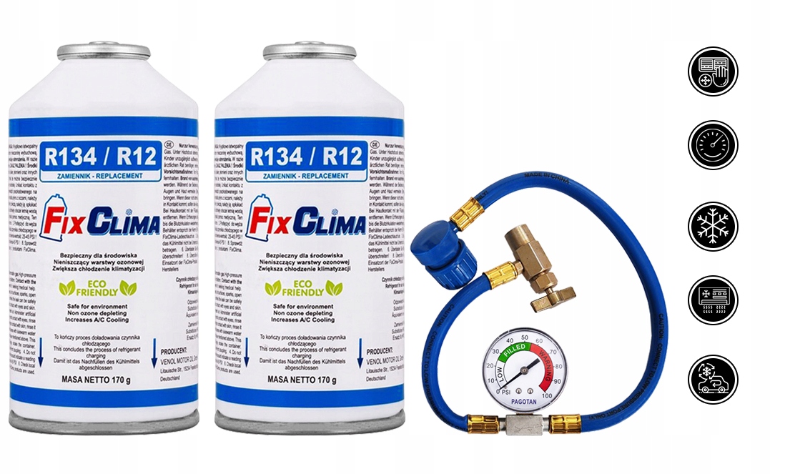FixClima-це холодоагент, який є прямою заміною фреону, використовуваного в системах кондиціонування повітря більшості автомобілів в період з 1994 по 2016 рік (інформація про точну посадку пізніше в аукціоні).