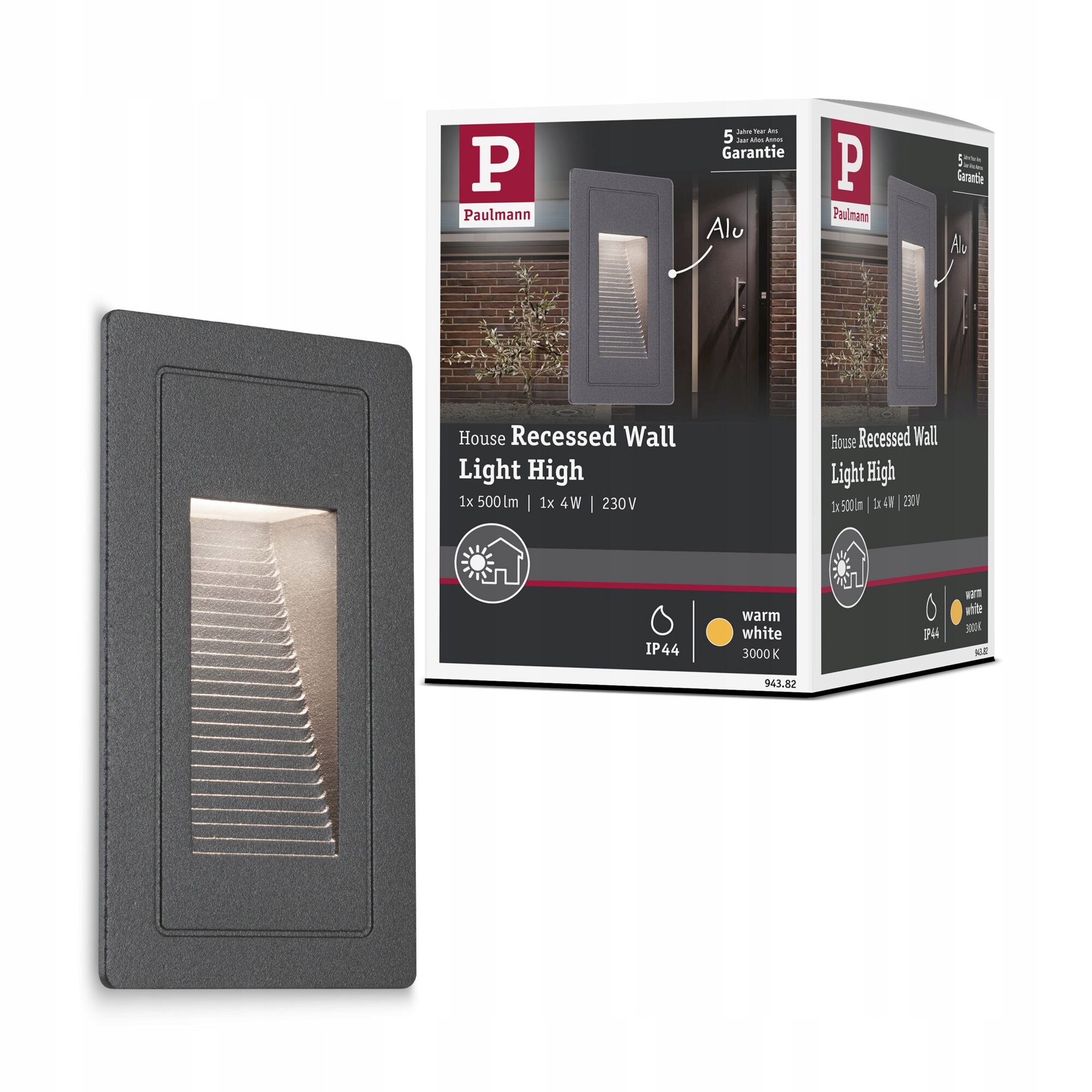 Високий врізний настінний точковий світильник з алюмінію розміром 103х58 мм , призначений спеціально для вбудовування в стіну; створює цікаві світлові ефекти та підвищує безпеку, освітлюючи територію поза будівлею. Світильник, що світиться вночі приємним світлом з температурою 3000 К, повністю водонепроникний і нержавіючий завдяки класу захисту IP44