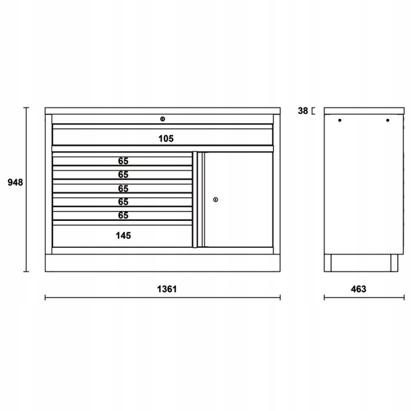• 1 ящик для зберігання з полицею і дверцятами, внутрішні розміри 504x424x597 мм