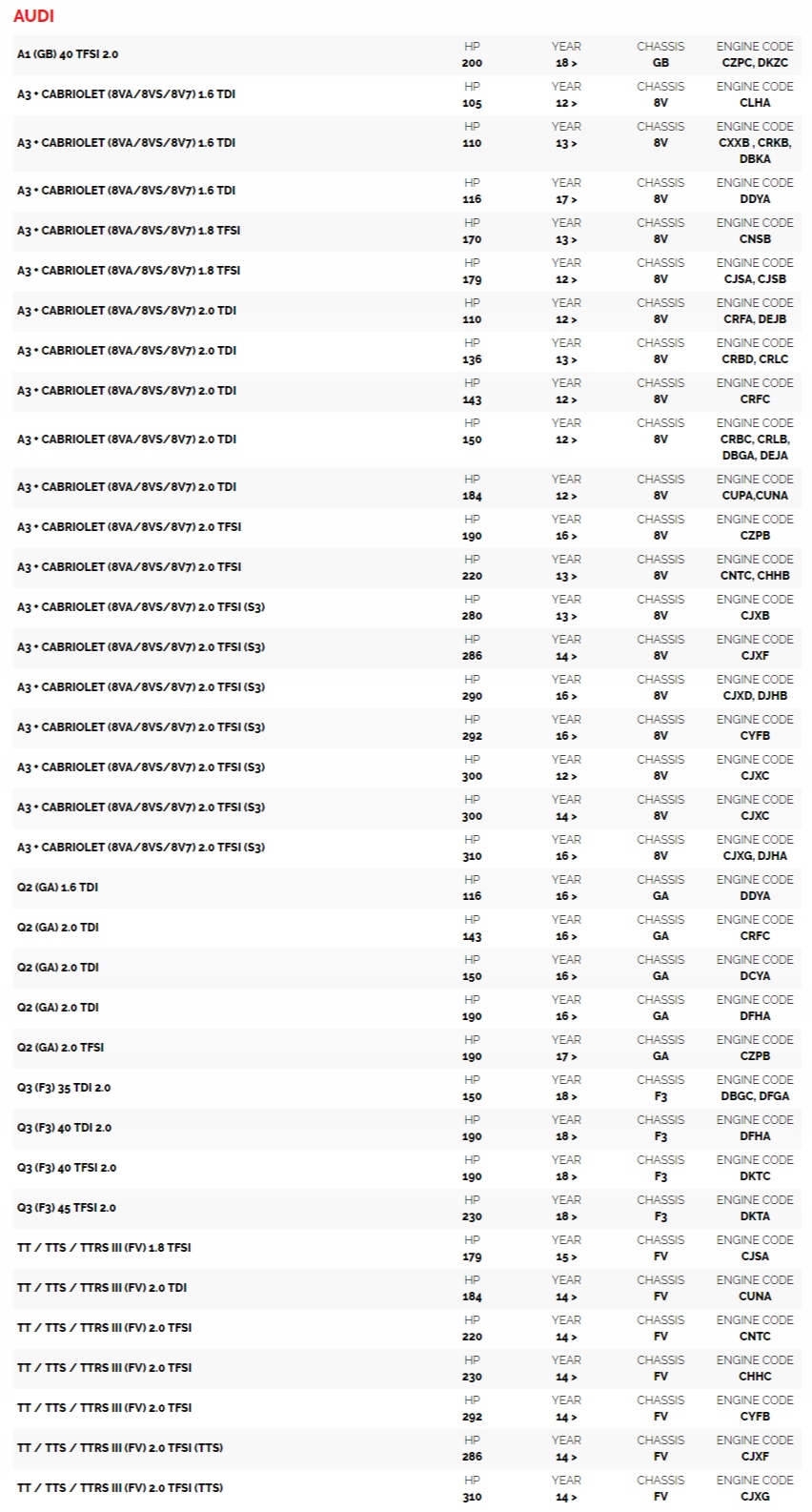 - audi S3 A1 Q2 Q3