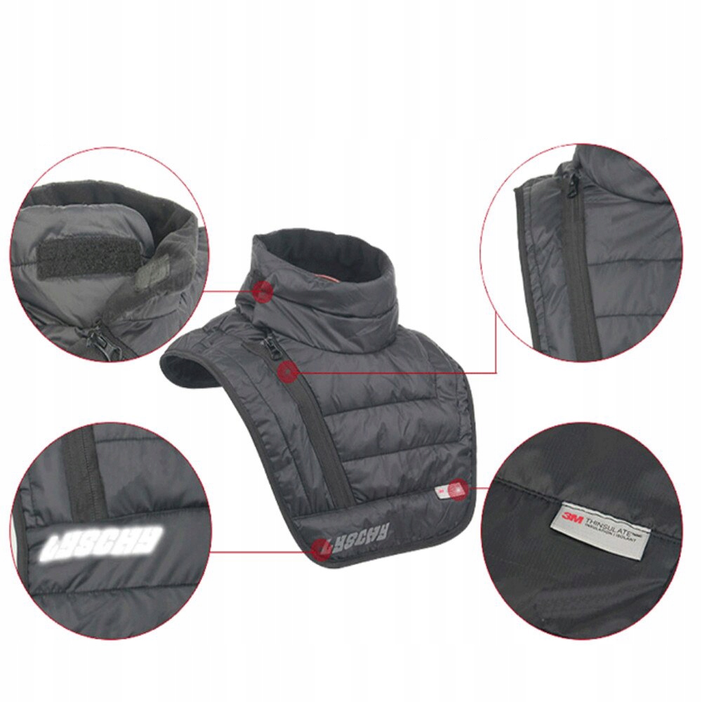 комір виготовлений з теплого матеріалу, який захищає шиюі підборіддя від вітру, снігу, дощу або пилу
