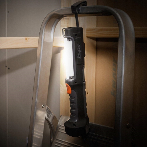 - ліхтарик відмінно підходить для використання без залучення рук завдяки висувному верхньому гаку, сильним бічним магнітів і широкому основи.