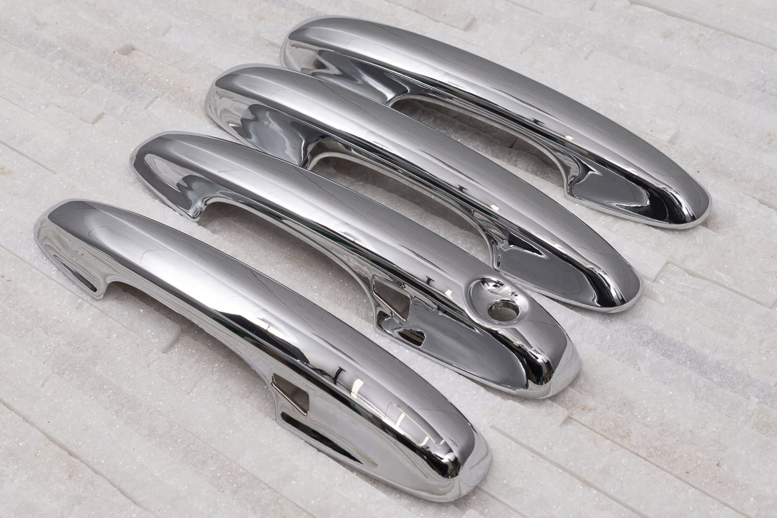 Декоративні хромовані накладки на дверні ручки є доповненням, яке доповнює стиль автомобіля ноткою спортивної елегантності. Ідеально підігнані до контурів автомобіля, вони змінюють образ дверних ручок моделі FOCUS, роблячи їх справжньою окрасою автомобіля. Виріб виготовлено з високоякісного хромованого ABS пластику.