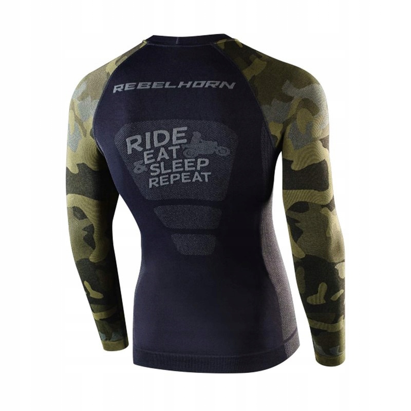 мотоциклетна футболка Rebelhorn Freeze виготовлена з легкого і швидковисихаючого матеріалу. Ця модель з довгим рукавом дозволяє підтримувати тепловий комфорт. Крім того, Rebelhorn Freeze дозволяє легко надягати і знімати мотоциклетний одяг. матеріал виготовлення