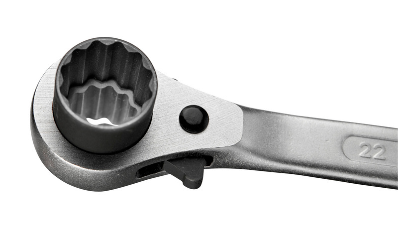ключ з храповим механізмом, два розміри гайкового ключа в одній втулці, хром-ванадієва сталь.е>