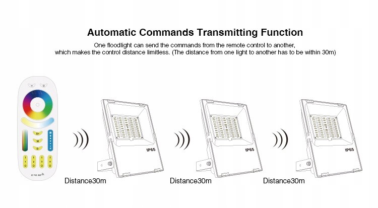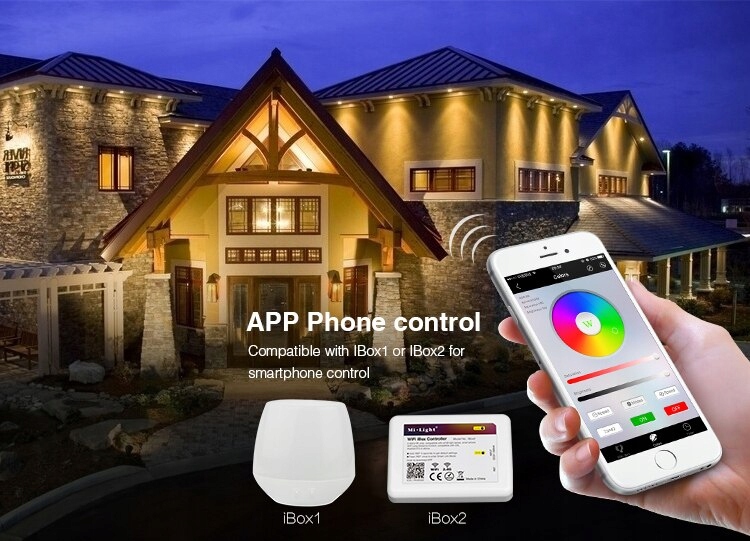 ми можемо керувати прожектором за допомогою пульта дистанційного керування або безкоштовного мобільного додатку, для якого потрібне використання моста Wi-Fi iBOX.е>