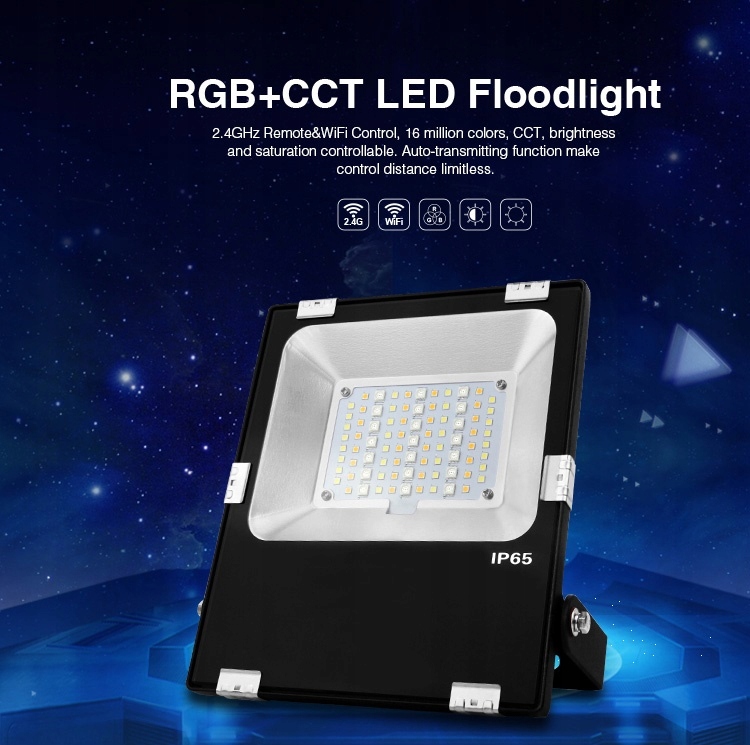 Сучасний Світлодіодний прожектор futt05 марки Mi-Light - це інтелектуальний світлодіодний джерело світла RGB+CCT з потужністю 10 Вт , який можна підключити безпосередньо до мережі86-265 В змінного струму < /B>. галогенний світлодіод випромінює кольорове світло RGBі білий колір від 2700K до 6500K(Теплий/Холодний), а світловий потік від 750lm до 900lm .е>