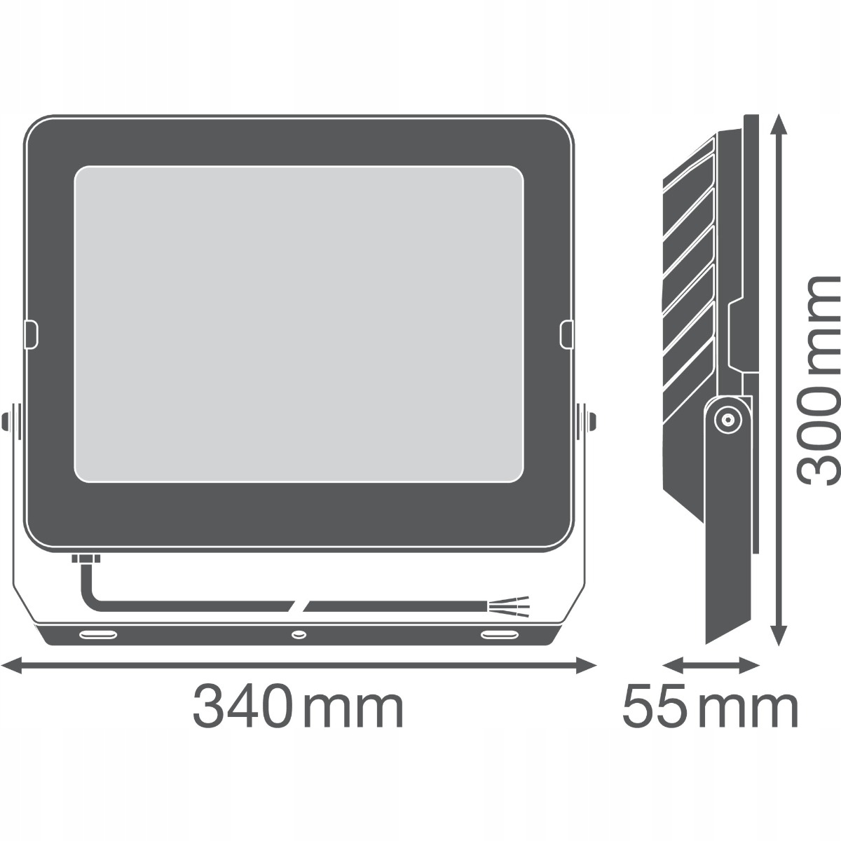прожектор має гнучкий провід довжиною 1 м, трижильний з товщиною 3 x 1 мм.