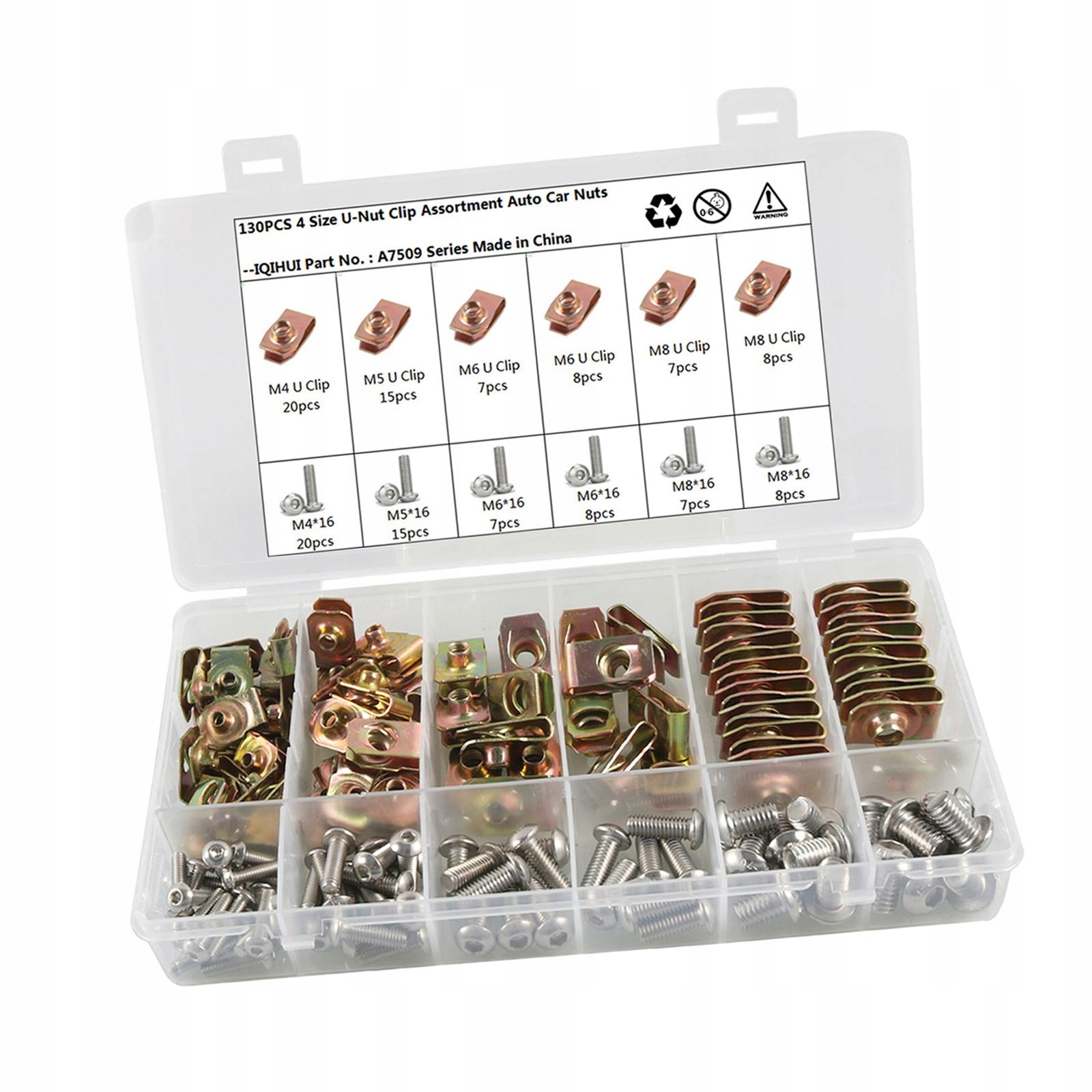 упаковка: цей набір включає 130 шт.Гайки, затискачі: 20 шт. М4 15 шт. М5 15 шт. М6 15 шт. M8; гайка: 20pcsm4x16mm, 15pcsm5x16mm, 15pcsm6x16mm, 15pcsm8x16mm може задовольнити ваші потреби.е>