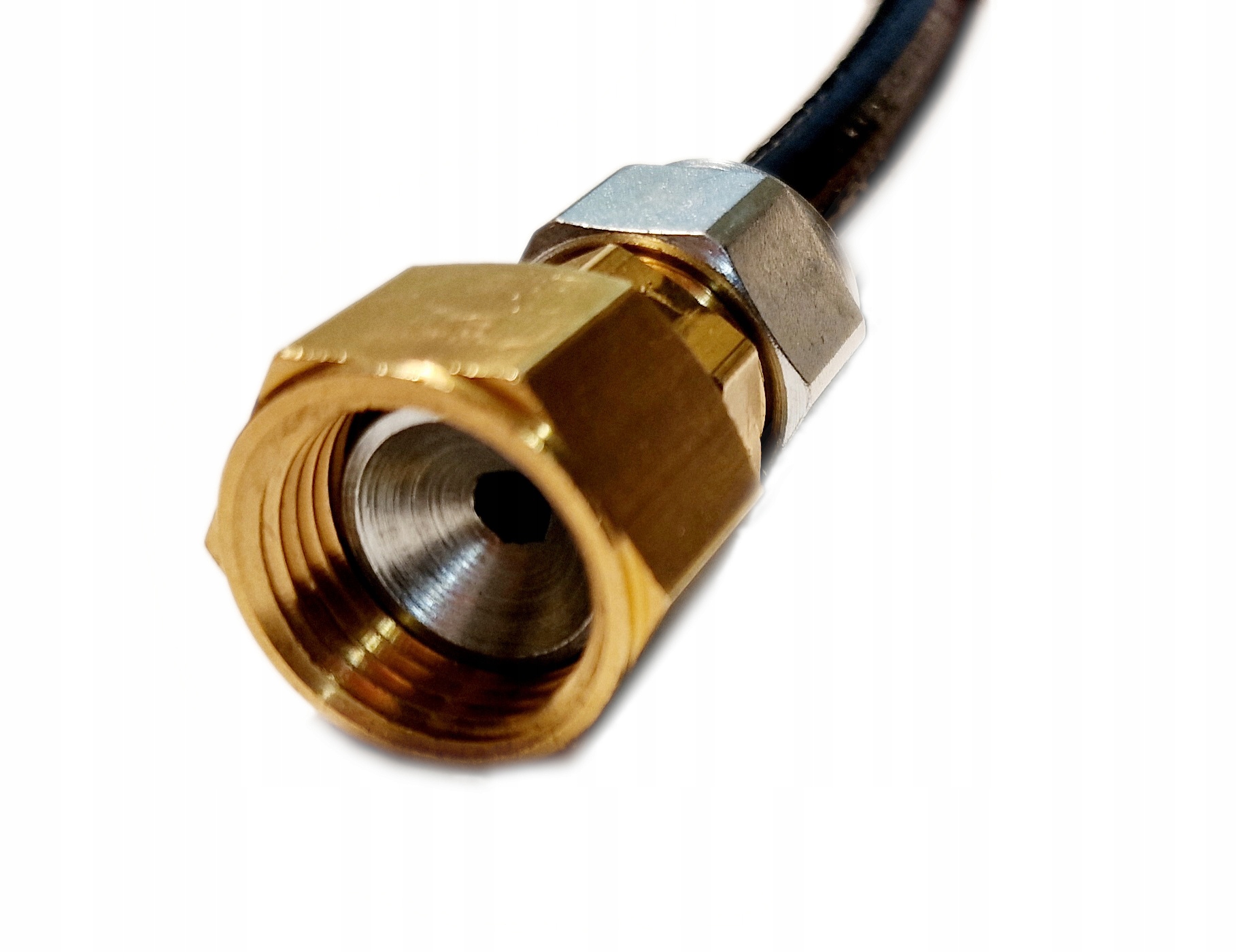 на провід надягаємо натискну гайку, а потім кільце, як показано на фото. Потім вставляємо штуцер в провід