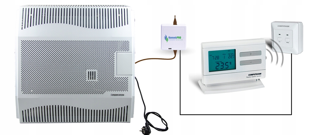 обігрівач має механічний термостат, на якому користувач встановлює бажану температуру. При досягненні заданої температури плита автоматично вимикається і загоряється тільки пульт дистанційного керування. Термостат має 7-ступінчасте регулювання. Номер 1 на ручці термостата - 13ºc, а номер 7 на ручці термостата-30ºC. Піч виробляється в Туреччині.