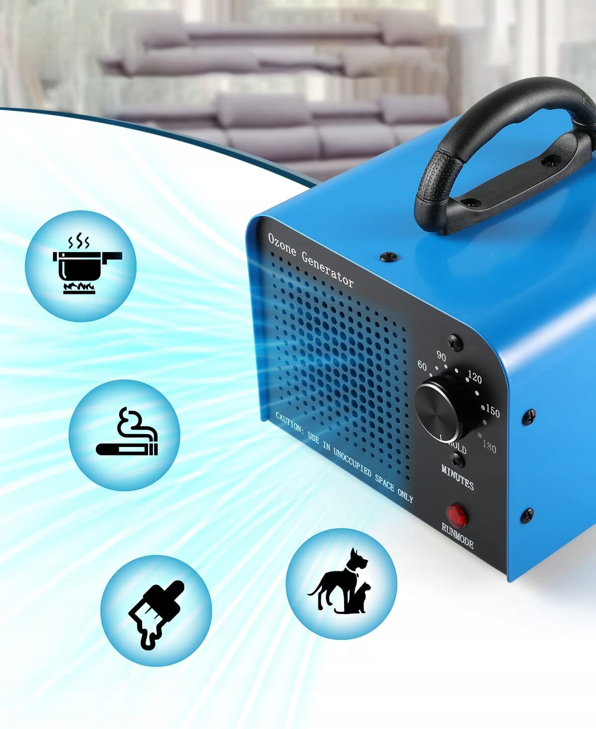 Озонатор оснащений таймером, який дозволяє запрограмувати час вимкнення генератора озону через встановлений час.