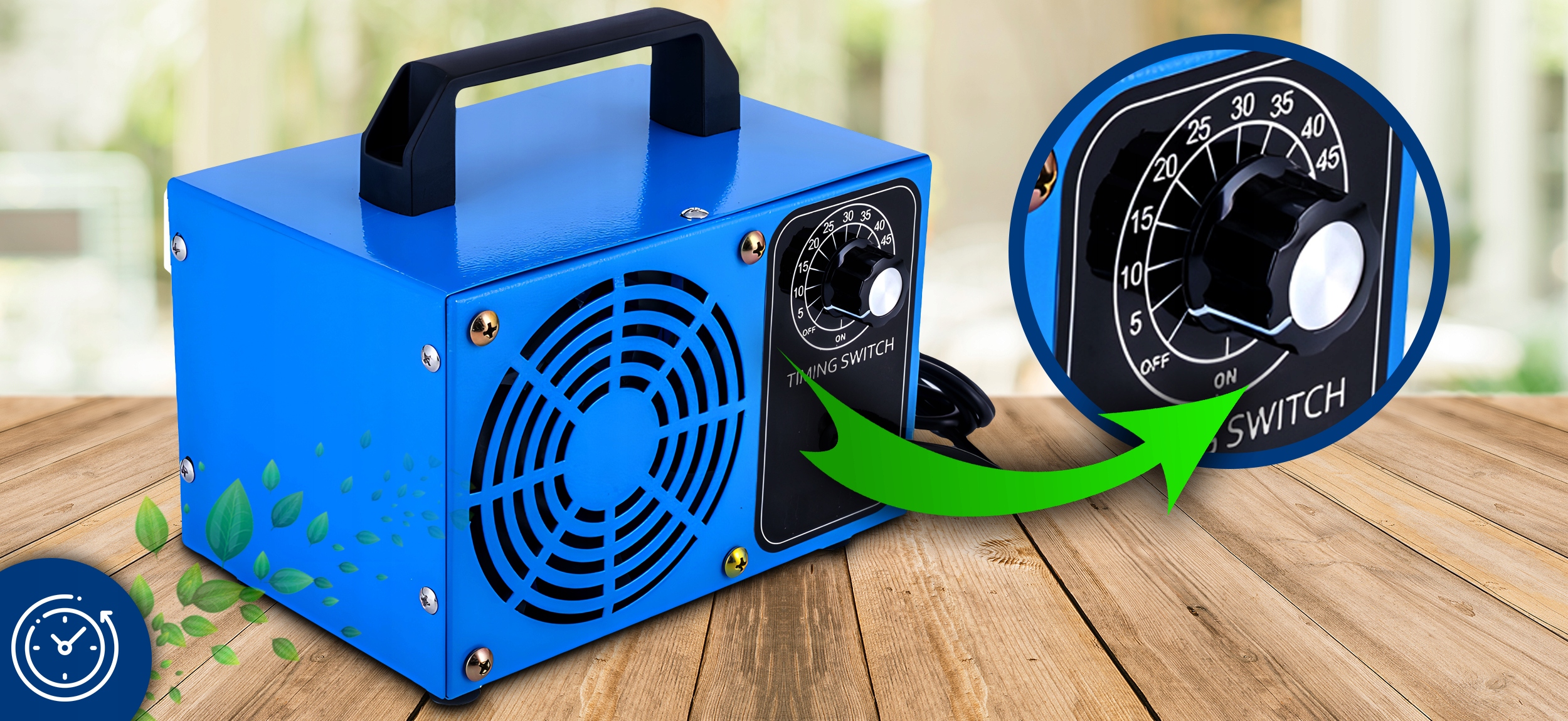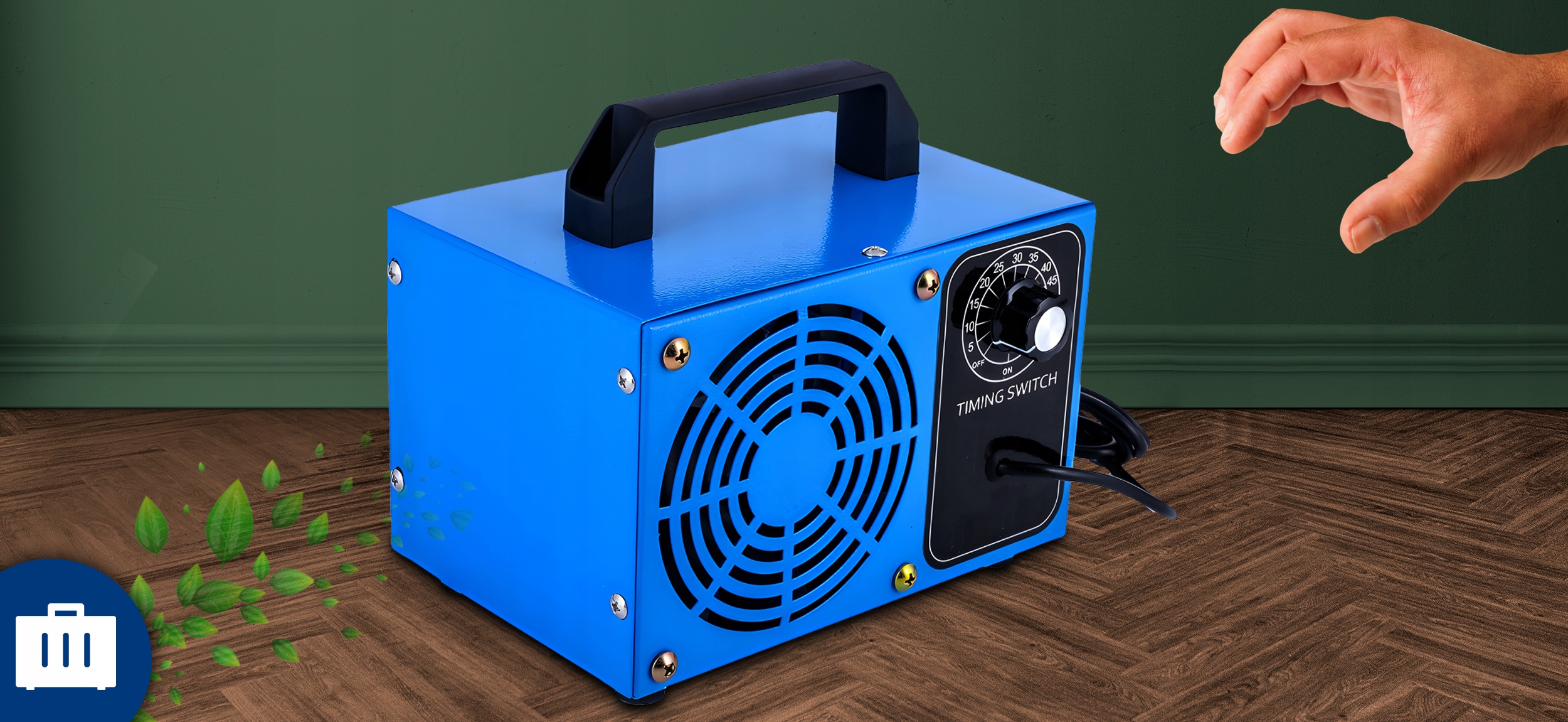 вентилятор відповідає за точний розподіл озону по кімнаті або автомобілю.
