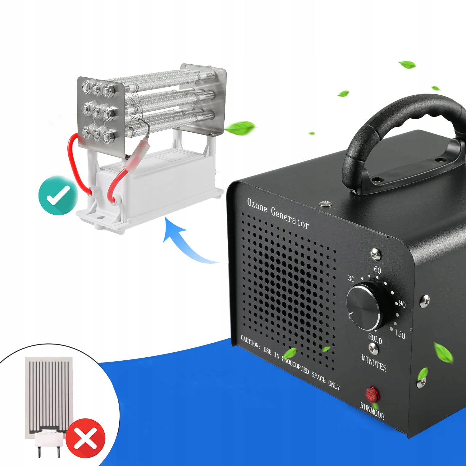 <✅ велика потужність-генератор має максимальну вихідну потужність 60000 мг / год, що підходить для 300㎡ простору. Вихід озону більш стабільний, ефективність на 50% вище, ніж у звичайної машини озону.е>