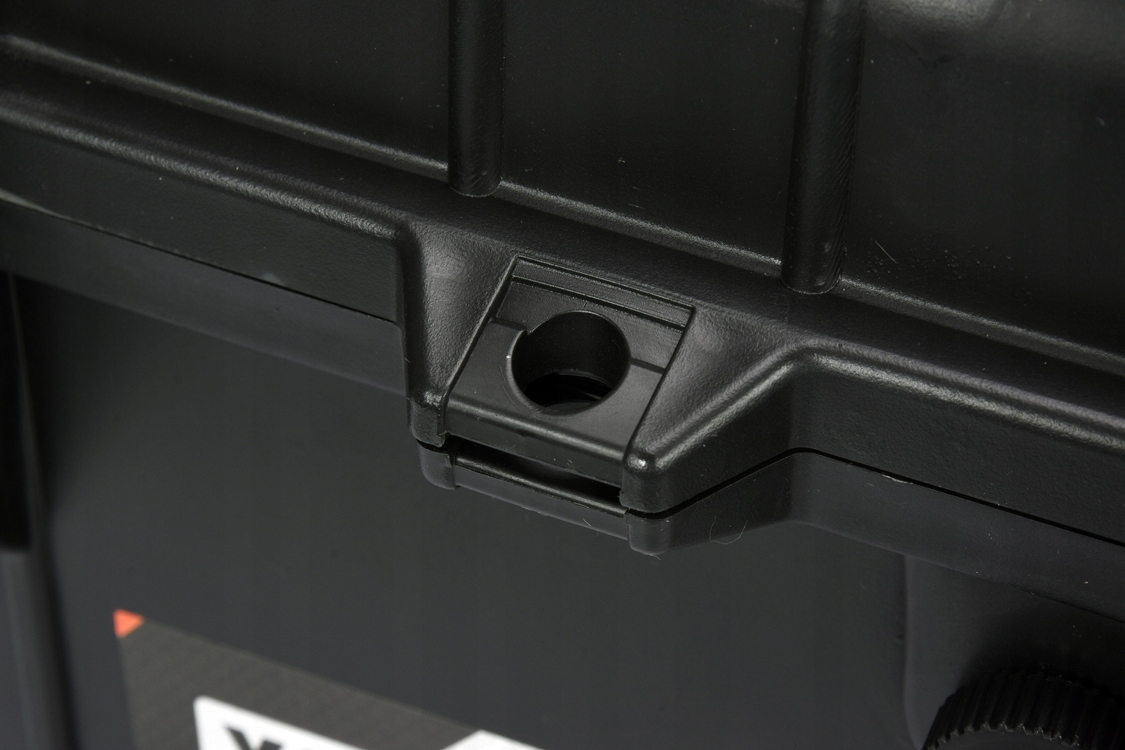 внутрішня частина валізи заповнена попередньо вирізаною губкою, підготовленою для самостійного моделювання заглиблень під конкретні продукти, наприклад інструменти, фотографічне обладнання або вимірювальне обладнання.