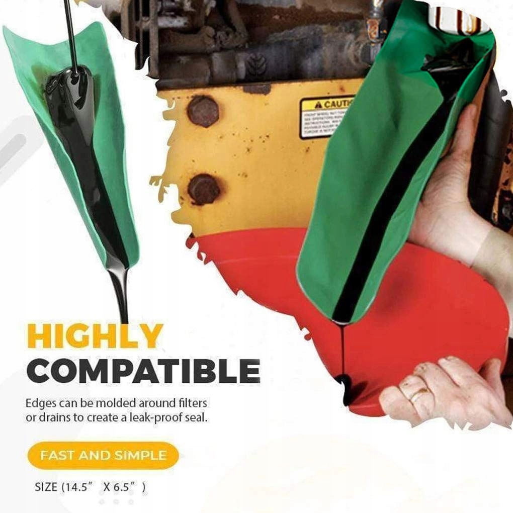 Ідеальна воронкова система для полегшення передачі, яку можна використовувати кілька разів. Гнучкий інструмент для зливу масла ідеально підходить для зливу масла, бензину та інших рідин з автомобілів, вантажівок, мотоциклів, квадроциклів, промислового обладнання, обладнання для газонів і вилкових навантажувачів. Краї дренажного інструменту можна формувати навколо фільтрів або дренажів, щоб створити щільне ущільнення, яке утримує масло від рами двигуна та навколишніх деталей без заміни рідини. За допомогою гнучкого інструменту для зливу ви можете легко злити важкодоступні масляні фільтри, не створюючи безладу. Простий, але корисний інструмент для перенесення інгредієнтів із контейнерів у пляшки, не допускаючи розливання стільниці.