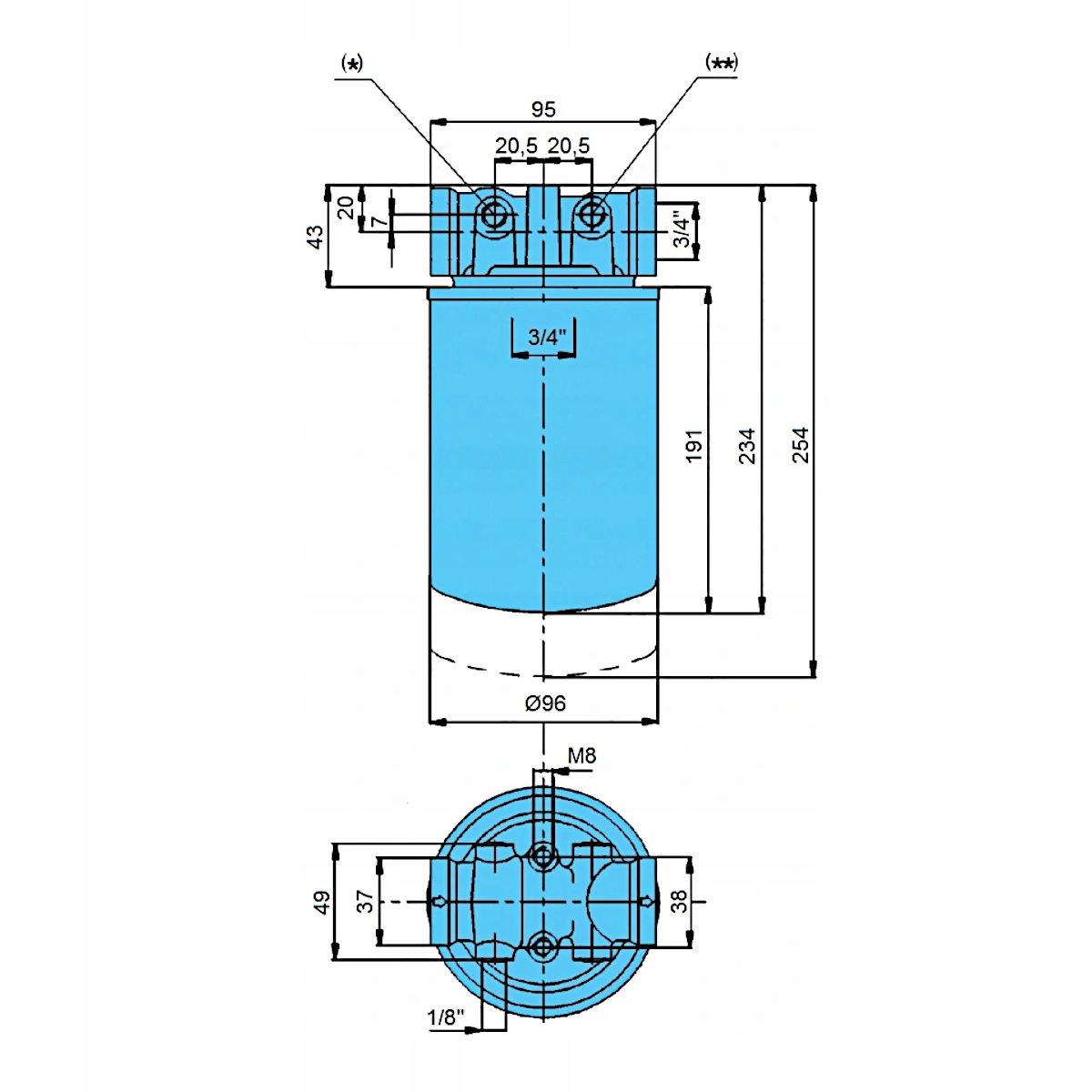 поворотний лінійний фільтр 3/4 " 75л / хв