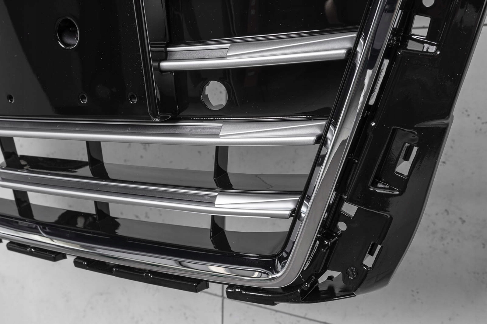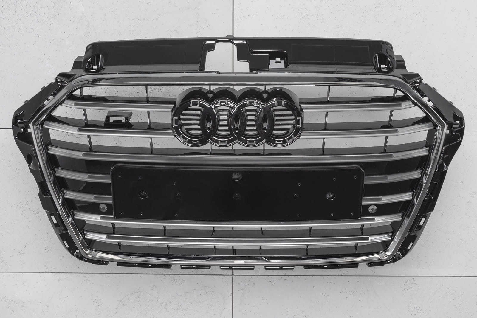 спеціальна решітка розроблена в стилі, характерному для автомобілів сегмента S-LINE. Решітка радіатора прикрашена широкими хромованими перекладинами, які обов'язково нагадують вселяють благоговіння, потужні автомобілі вищого класу. Елемент вражає своїм спортивним характером, а блиск хромованих елементів надає йому елегантність, завдяки чому він ідеально поєднується з вражаючим дизайном AUDI A3. е>