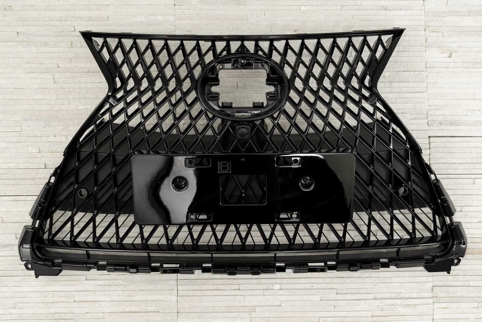 <е> передня решітка, решітка радіатора, з отворами для датчиків паркування PDC, призначена для LEXUS UX 2018+ (версія з камерою). е>Виділений гриль розроблений, щоб максимально підкреслити сучасний дизайн моделі UX. Елемент вражає спортивним характером, що нагадує зовнішній вигляд розкішної моделі Lexus ls500. Похилі поперечини підкреслюють динамічний стиль автомобіля, ідеально поєднуючись з прикрашає передню частину автомобіля значком LEXUS, доповнюючи його декоративний характер.е> <е> Виріб виготовлено з високоякісного АБС-пластика чорного кольору. Значок LEXUS не входить в комплект.е>