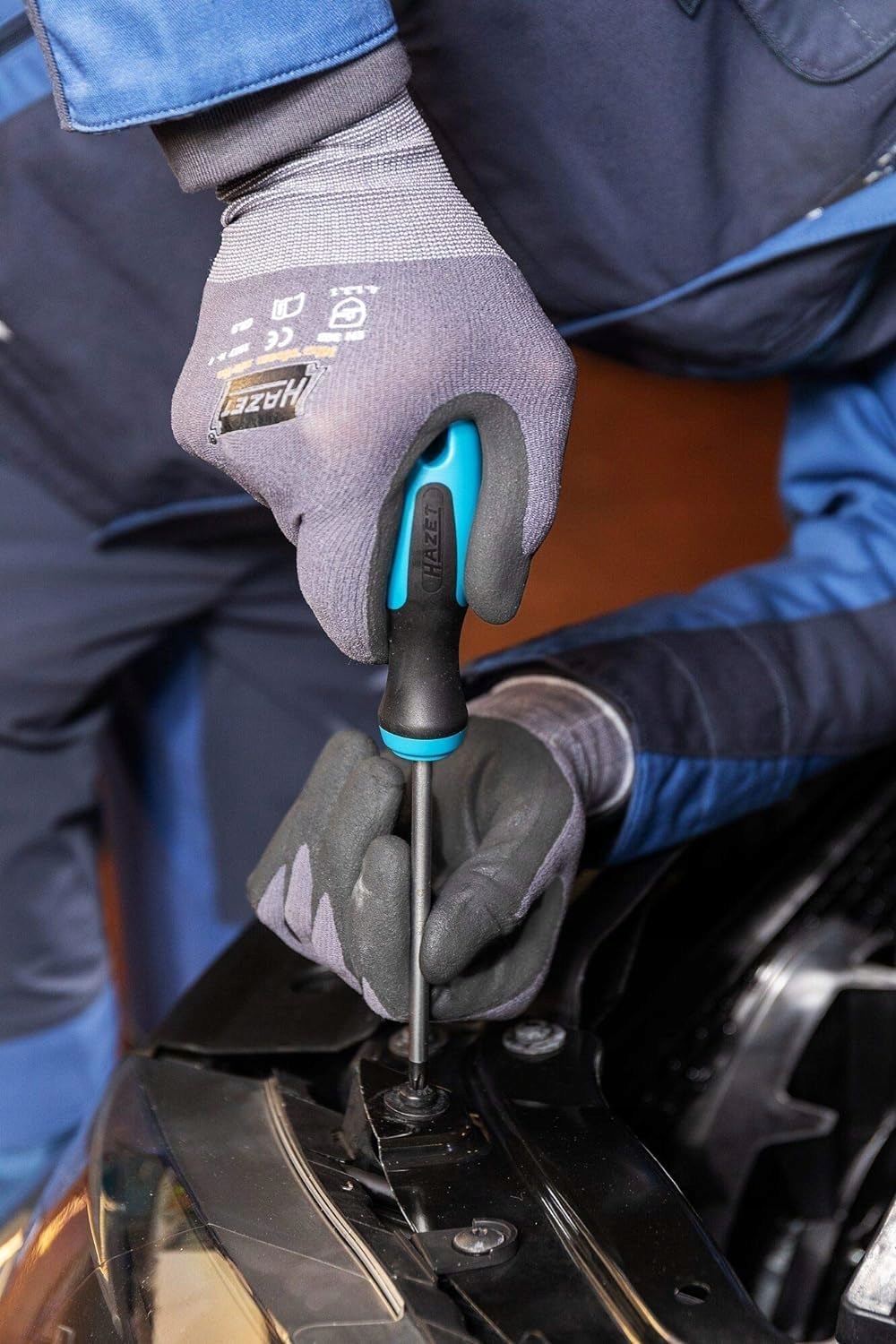 ДИЗАЙН: завдяки отвору для підвішування в ручці викрутки можна повісити будь-де. Завдяки типовому синьо-чорному дизайну HAZET вони привертають увагу кожного майстра, який цікавиться стилем.