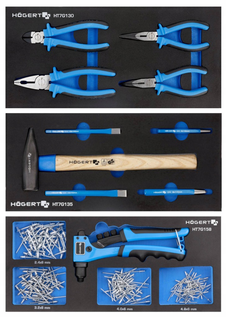 ящик 2 HT7G120 набір гайкових ключів 16 шт., вставка EVA HT7G122 набір гайкових ключів 7 шт., EVA картридж HT7G152 набір викруток 7 шт.