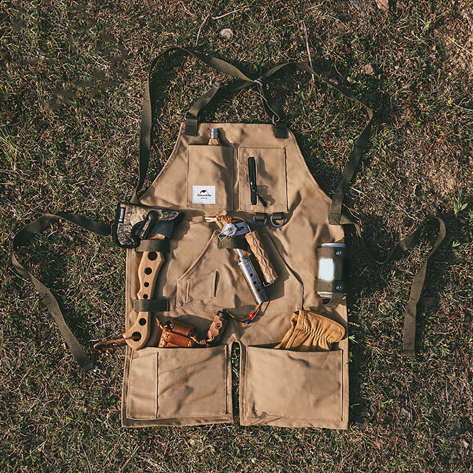 багаторазовий фартух для інструментів: робочий фартух має ряд фантастичних функцій, які вам сподобаються, в тому числі D-кільця, ремені на спині, щоб зменшити тиск на спину, і посилені передні кишені з клапанами, які можна легко прибрати фартух тесляра дихаючий, але міцний
