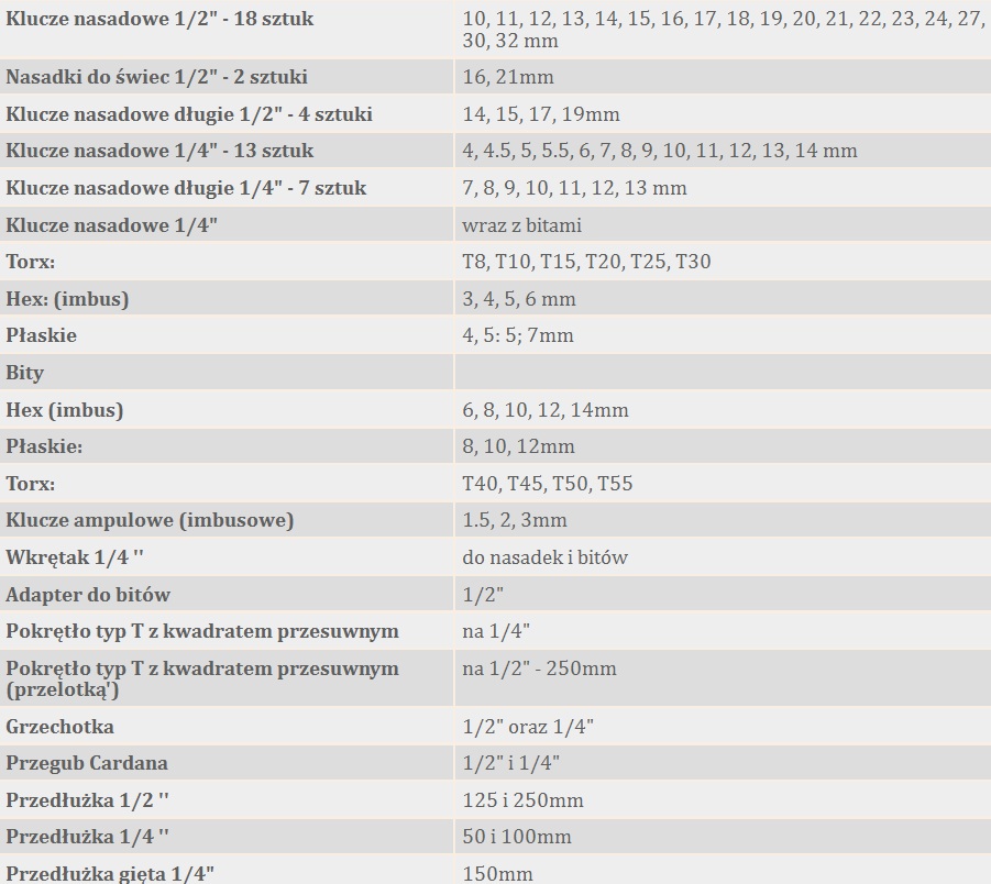 у цьому багатому і функціональному наборі ми знайдемо все необхідне в автосервісі, майстерні і вдома.