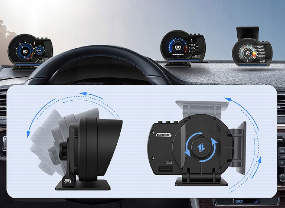 простота установки: приклеїти до екрану або надіти на приладову панель. Кронштейн можна повертати у всіх конструкціях для регулювання кута огляду і висоти. Smart Gauge підключається до автомобіля за допомогою кабелю OBD, plug and play. Він може відображати швидкість, температуру води, Джерело, Джерело палива, годинник, пройдену відстань за поїздку, час за поїздку, температуру масла, тиск на вході (psi). Муті нагадування про додаткові події та додаткові загрози.е>
