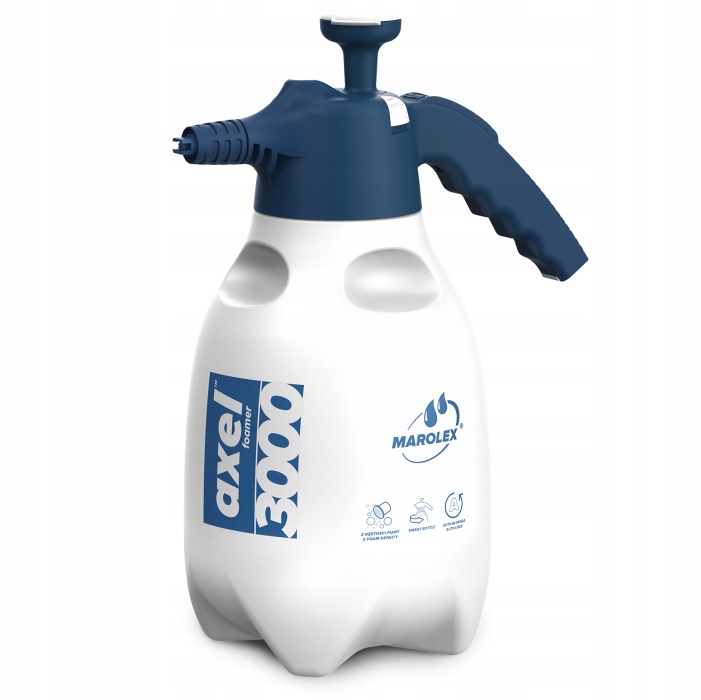 AXEL-Foamer - Це пристрій з ємністю 3 л , призначений для нанесення піноутворювачів. Характеризується найвищою якістю збірки і, ймовірно, є одним з кращих пристроїв такого типу в світі. Можливість зміни щільності піни за допомогою змінних пінопластових вкладишів робить цей продукт неперевершеним за спектром застосування.