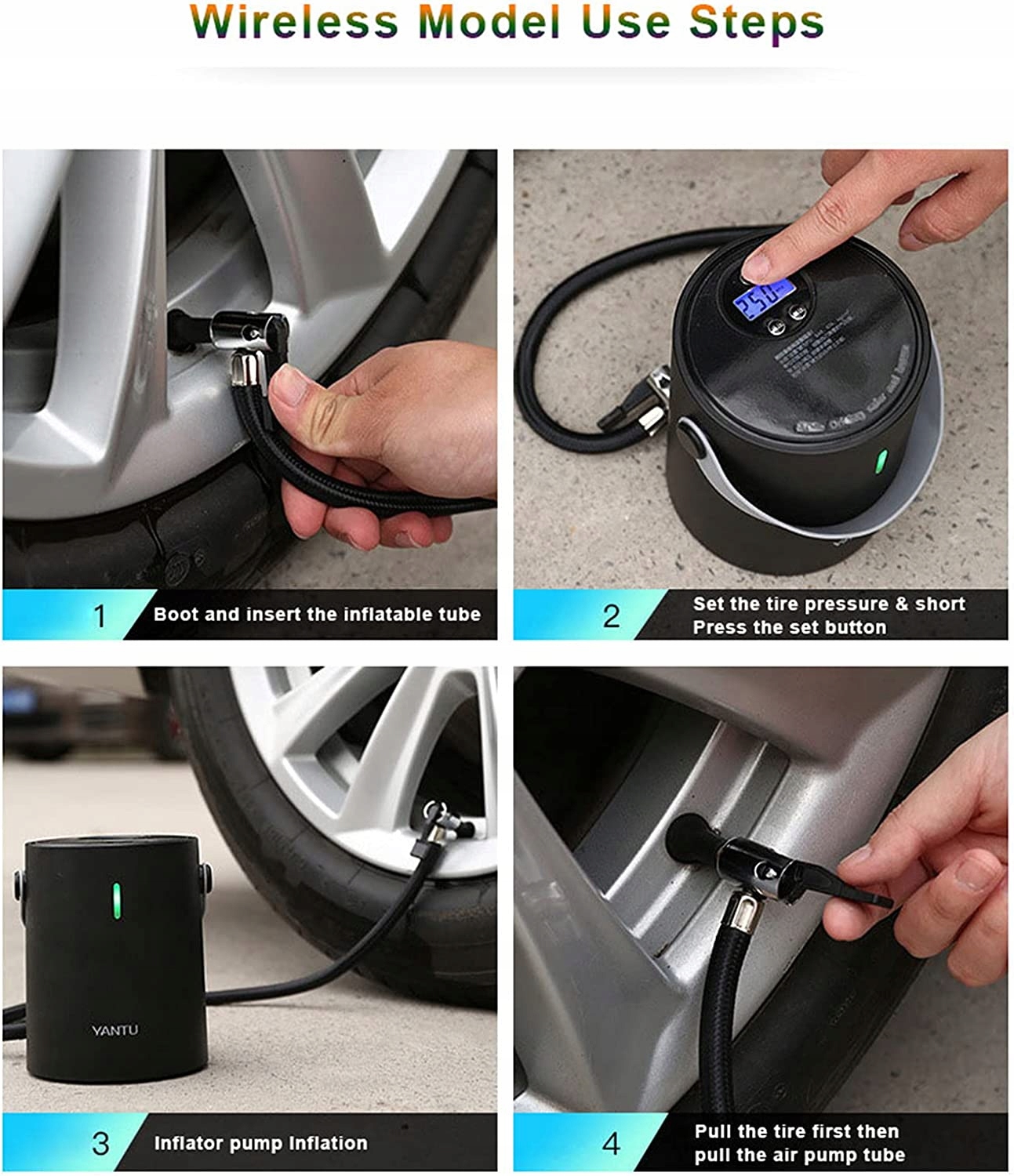 вбудований в шиномонтажний манометр МНС перекачує так мул повітря в шину. Спеціально розроблена повітряна ручка moe запобігає витоку повітря під час надування. Вбудований літієвий акумулятор 4500 мАг moe швидко uzupeni насос для економії часу. РК - цифровий вимірювач різання цей бездротовий повітряний насос має 4 додаткових блоку в тому числі Psi Bar Kpa kgcm2. РК-екран виражає провітрювання поточної вартості шин. Автомобільний повітряний насос виготовлений з нержавіючої сталі ABS пластик цифровий РК-дисплей вентиляційний отвір який є більш міцним і стійким до зносу. Шинний насос оснащений дворежимним світлодіодним навісом збоку. Дикий назад забезпечує безпеку водіння однаково вночі. Портативний повітряний компресор зі світлодіодною обтічною лампою має великий розмір легкий і потужний для перенесення і подорожей переносний Повітряний компресор moe накачування автомобілеймотоцикл баскетбольні Шини та інші надувні іграшки функція автоматичного видування задана значення того, що ви хочете шиномонтаж автоматично після осідання шин wic вам не потрібно турбуватися про надмірне накачування або низькому тиску в шинах moesz atwo буде зчитувати тиск на РК-дефлектор шиномонтажного насоса