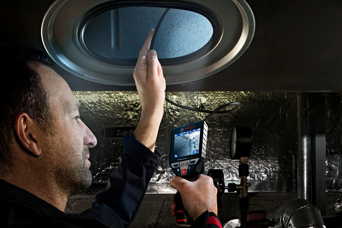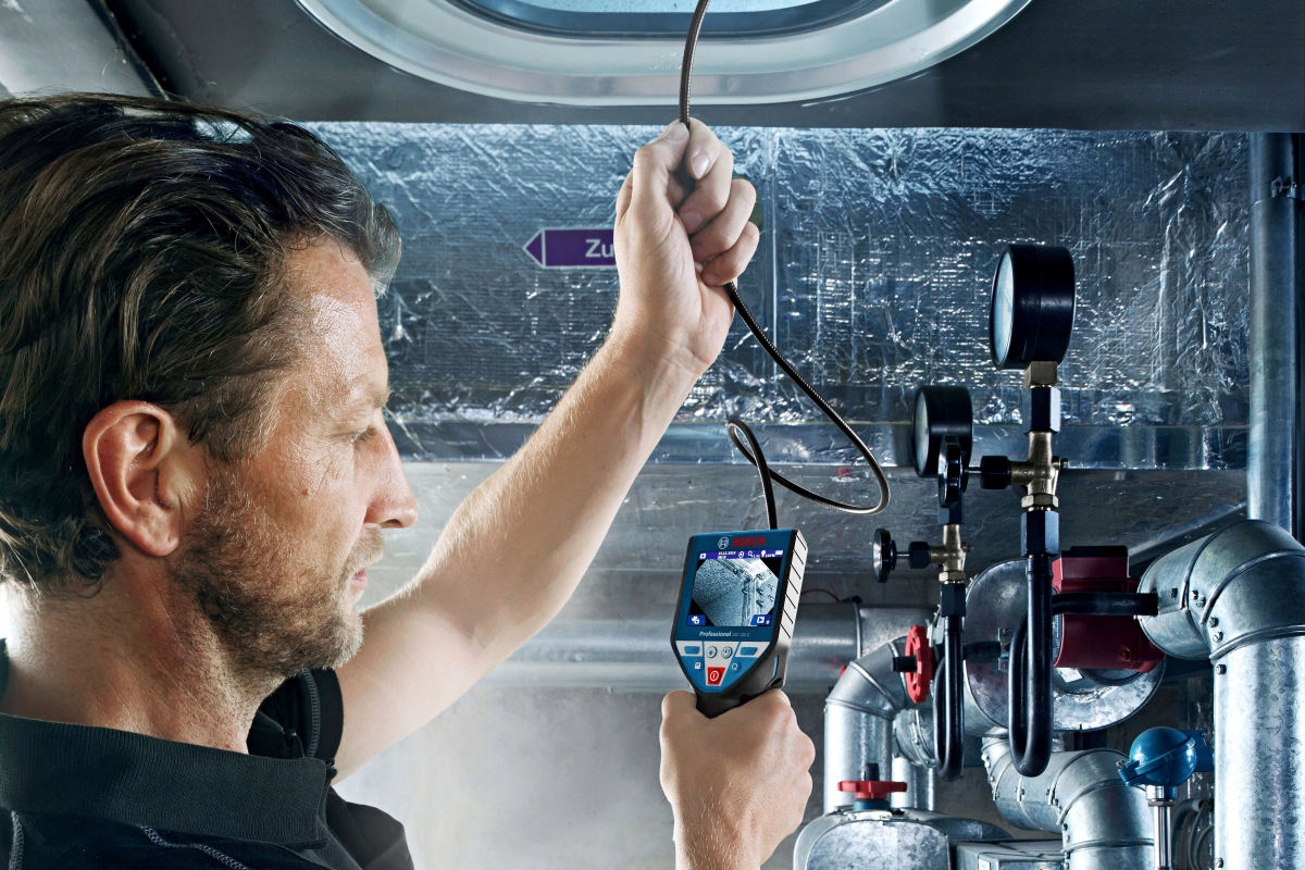 зручна інспекційна камера GIC 120 C BOSCH з гнучким важелем 120 см, який дозволяє дістатися до важкодоступних місць, наприклад, заховані Деталі двигуна, Каналізаційні системи за стіною тощо. Пристрій завдяки універсальному застосуванню ідеально підходить для роботи будь-якої професії, яка має справу з важкодоступними місцями (механіки, інспектори, сантехніки, монтажники сантехніки, опалення, вентиляції)